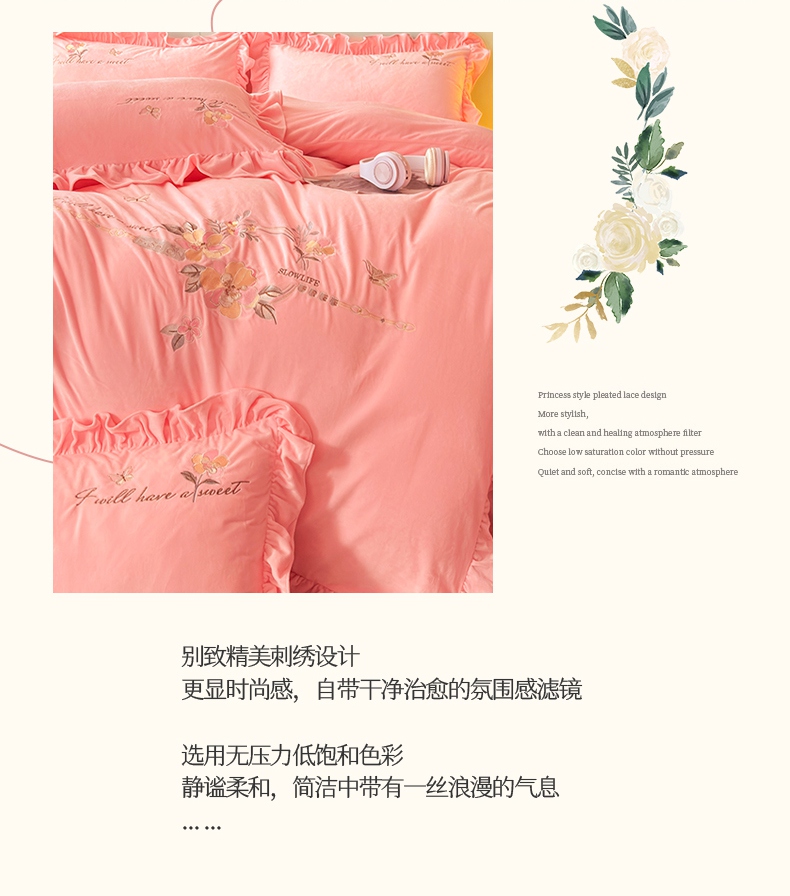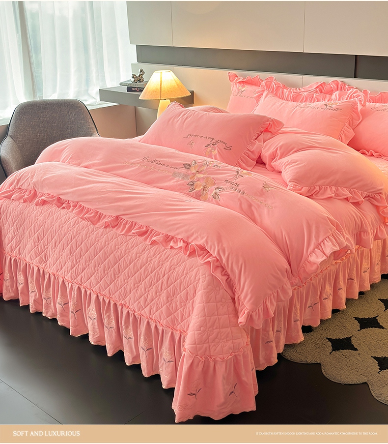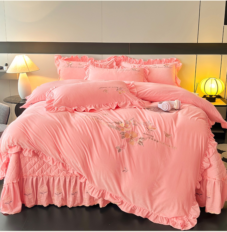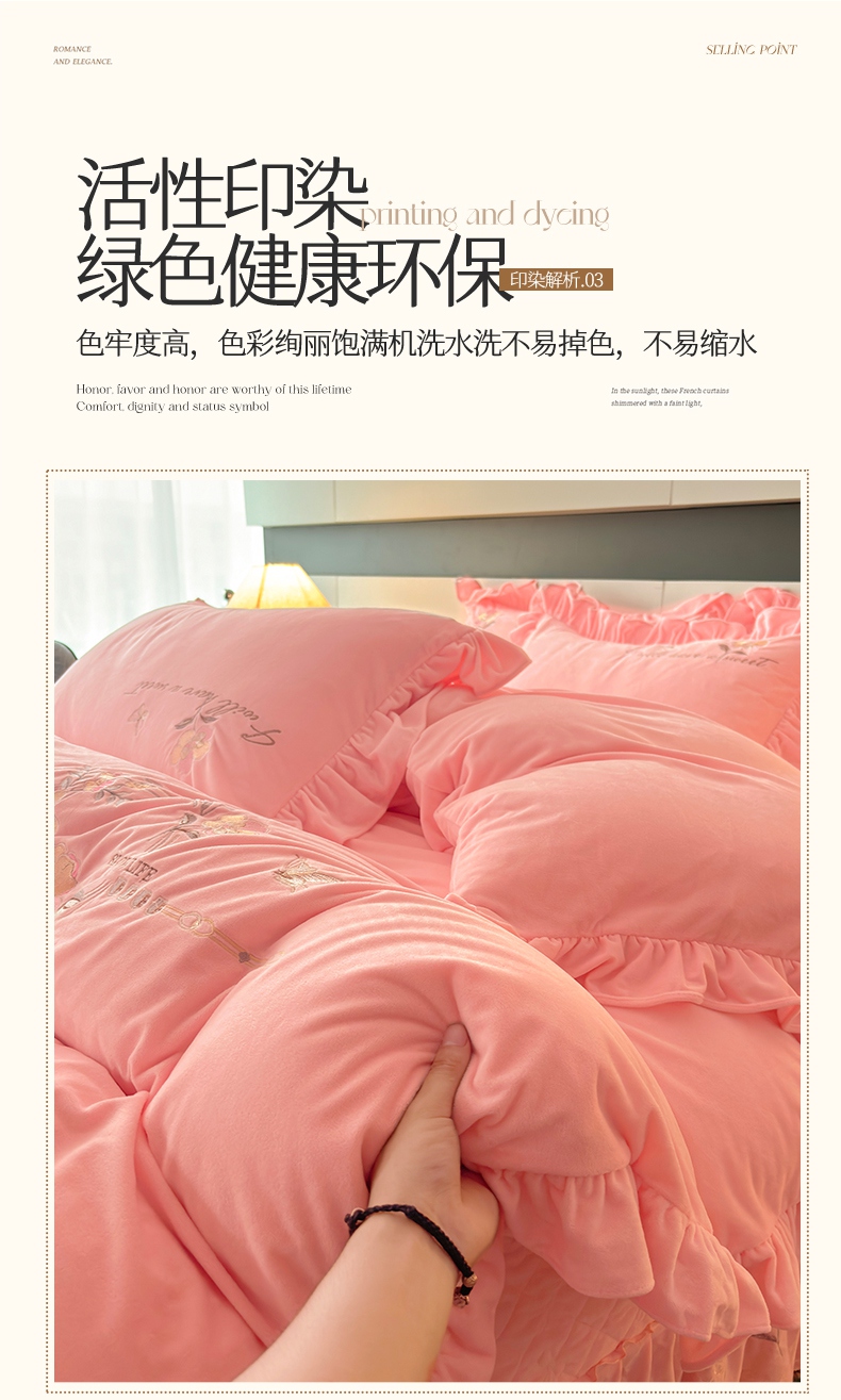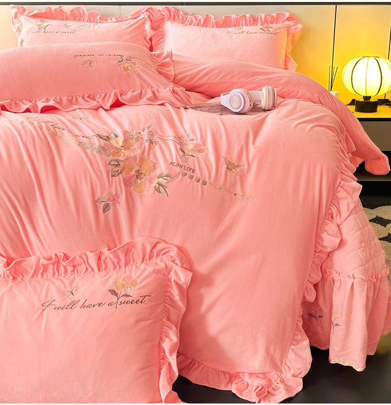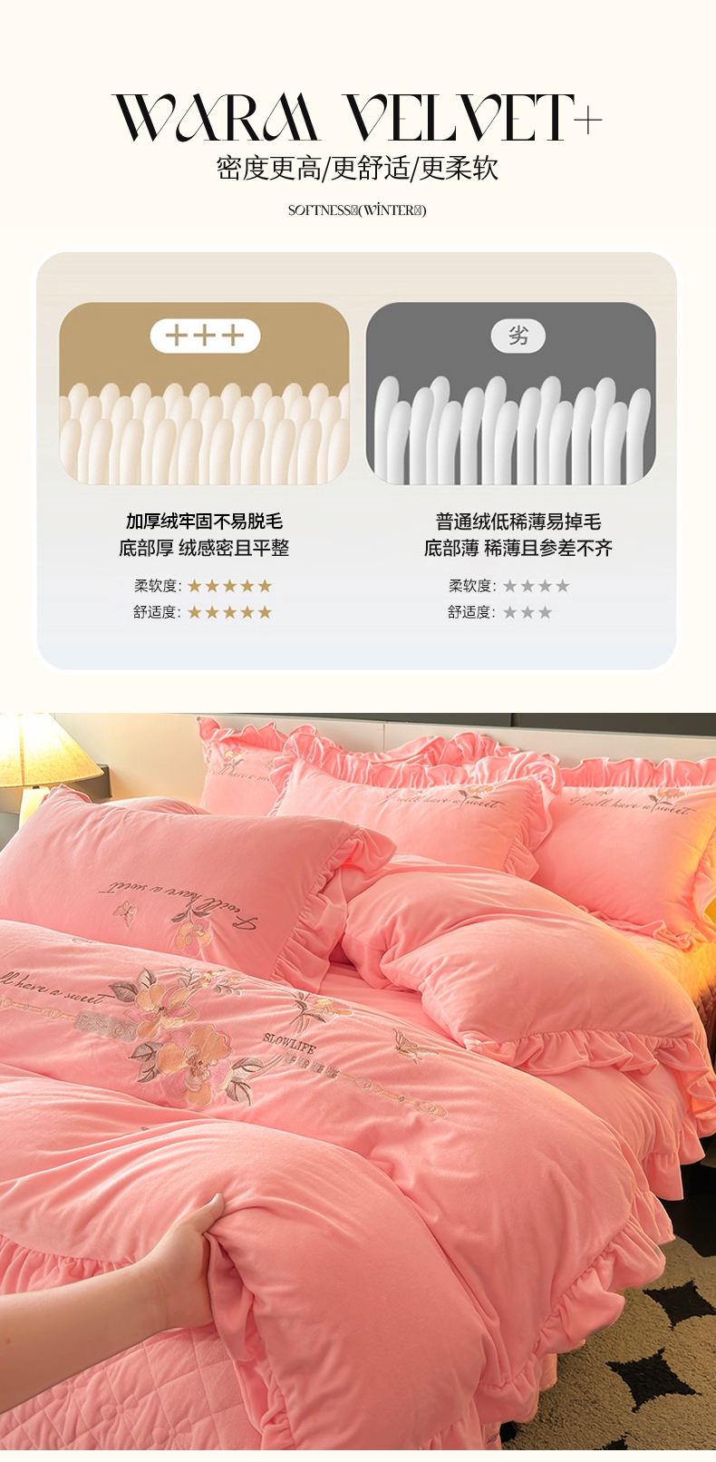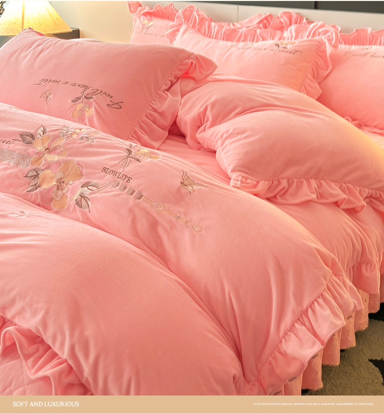 当前位置: 91家纺网 > 商品网购 > 床品套件 > 四件套 > 宝宝绒四件套 > 2024新品A类依恋宝宝绒韩版四件套 香妃粉