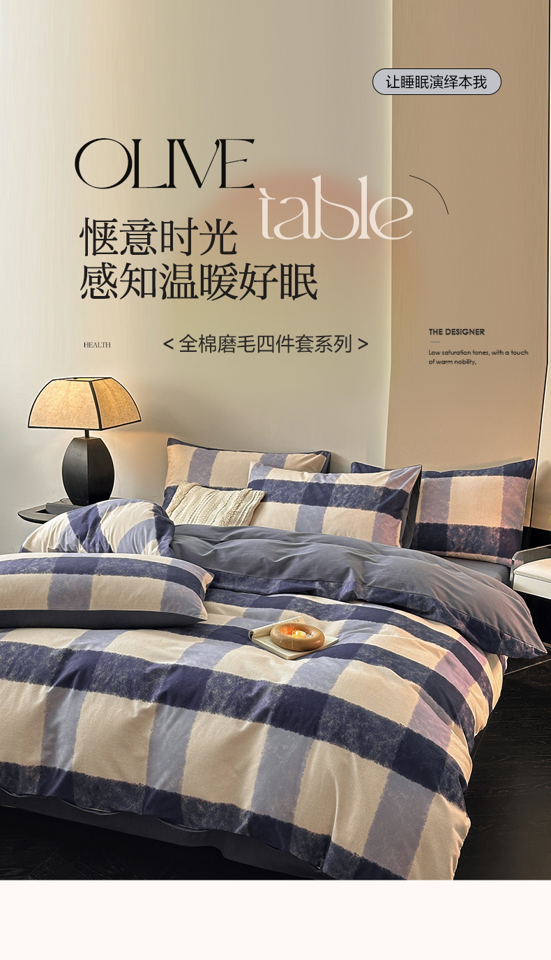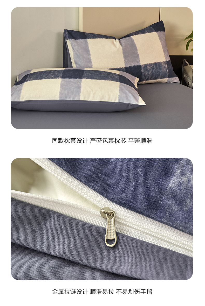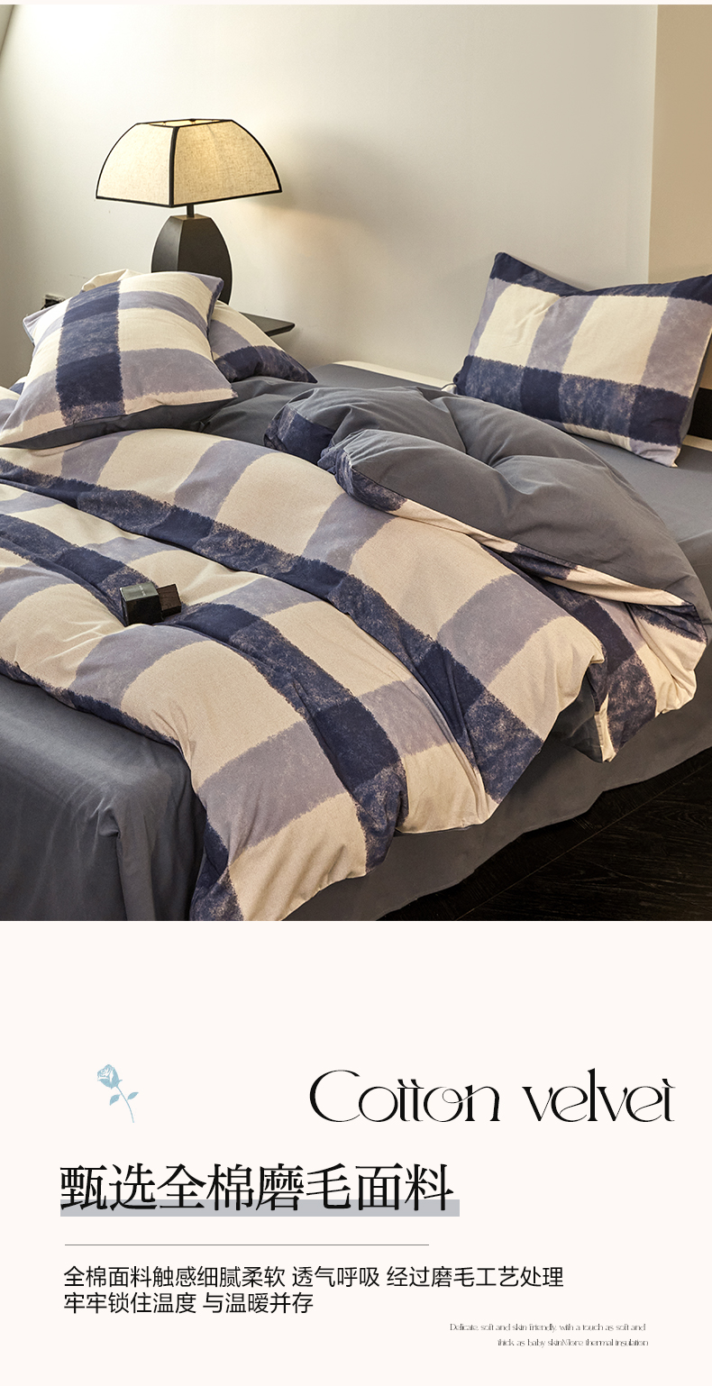 商品名称:雅居纺家纺 2024新款全棉印花磨毛四件套 蓝大格
