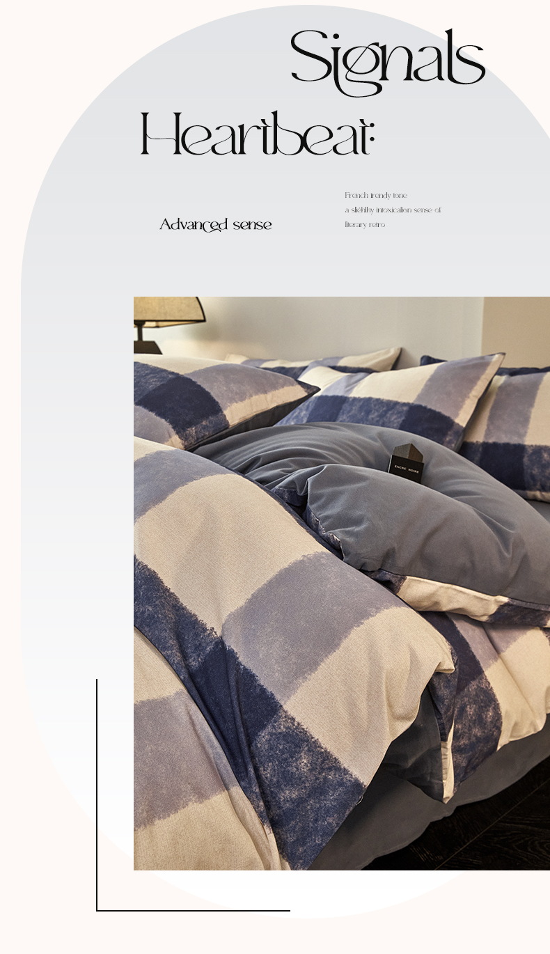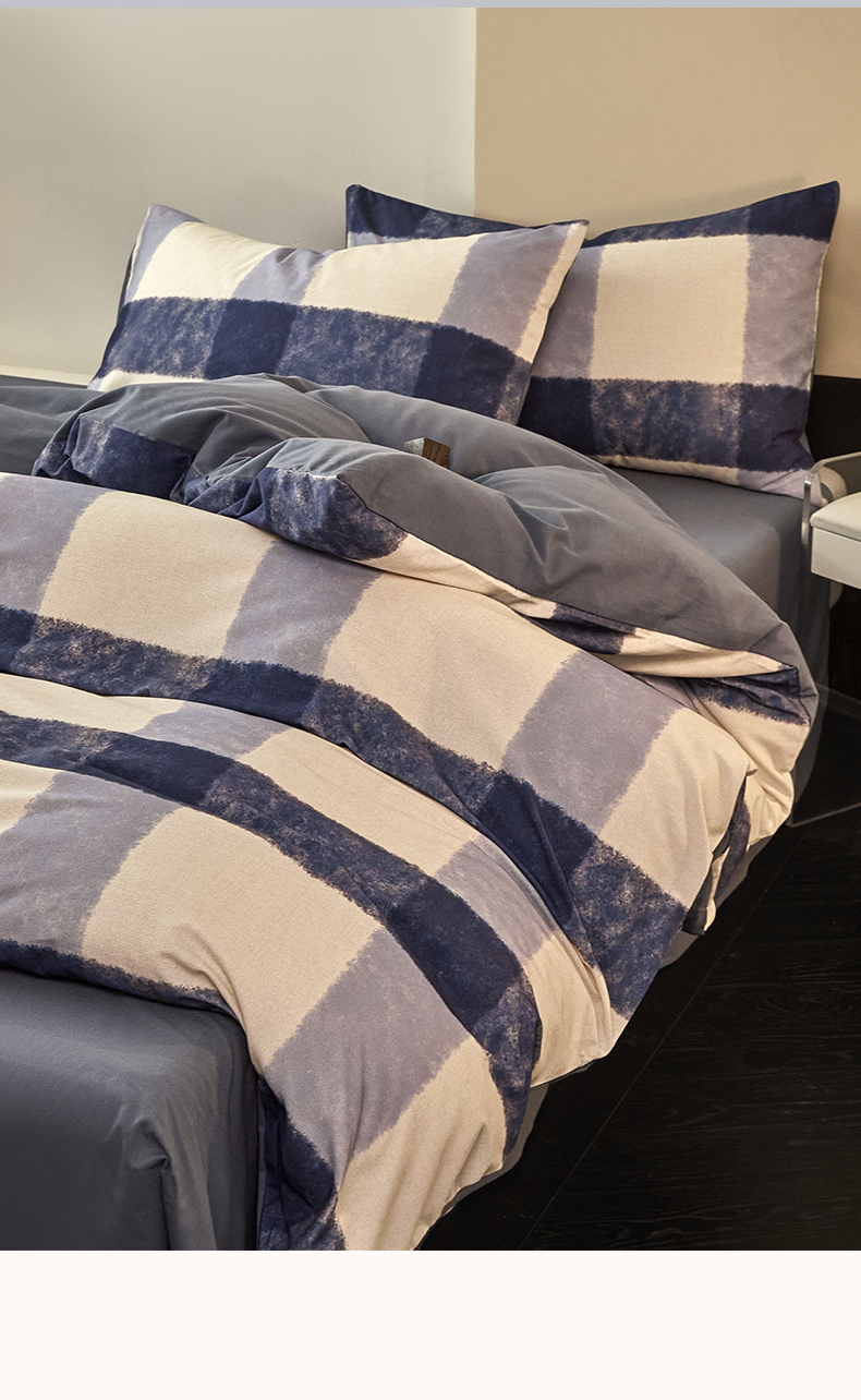 雅居纺家纺 2024新款全棉印花磨毛四件套 蓝大格