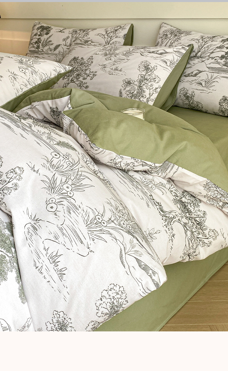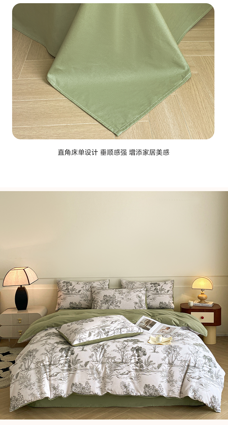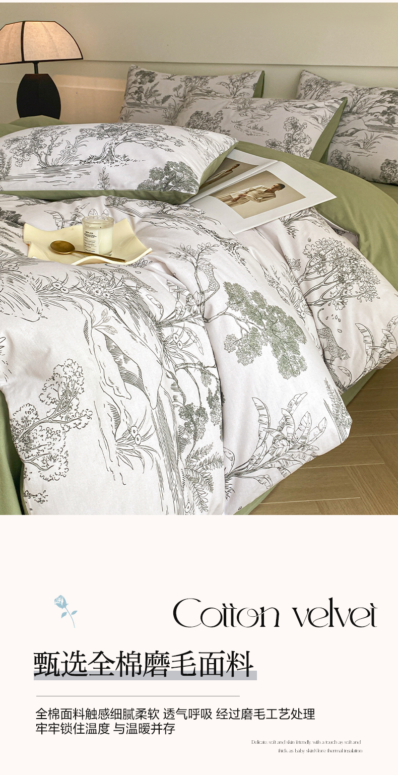 雅居纺家纺 2024新款全棉印花磨毛四件套 万物生灵