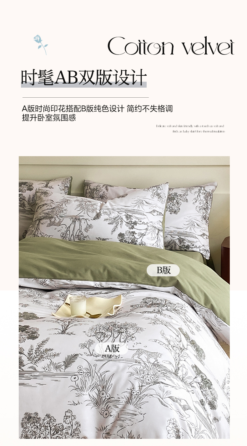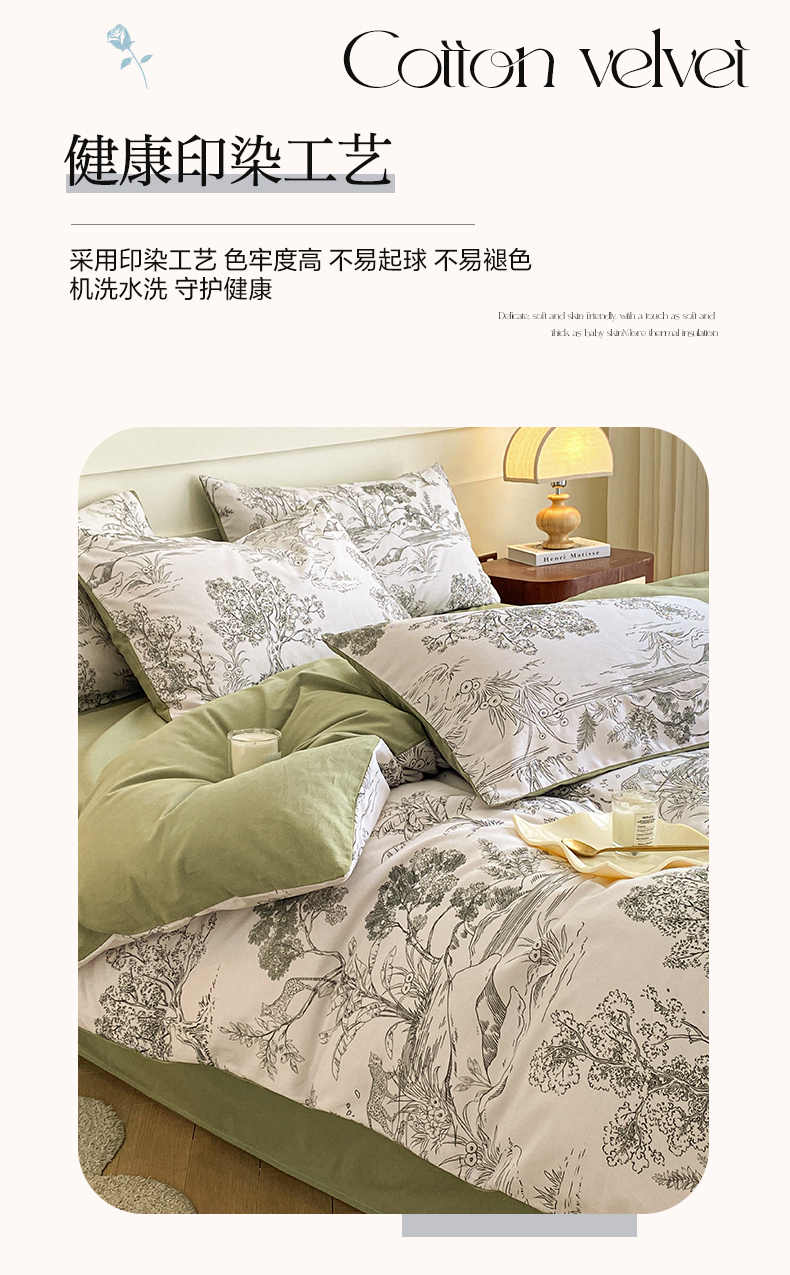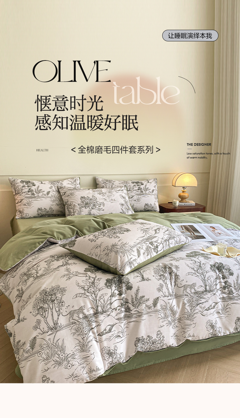 雅居纺家纺 2024新款全棉印花磨毛四件套 万物生灵