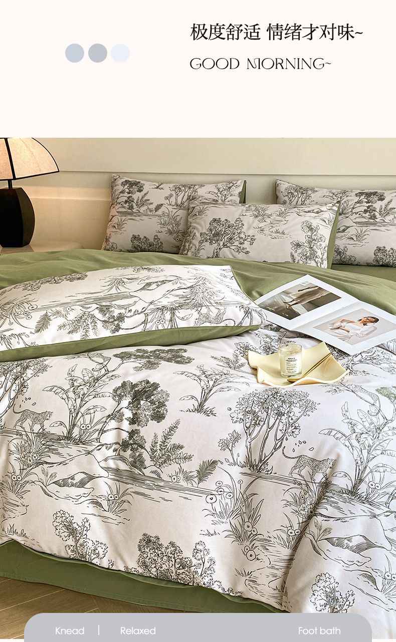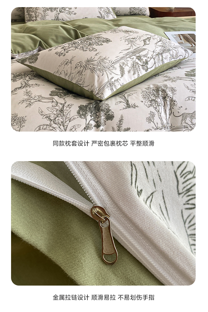 商品名称:雅居纺家纺 2024新款全棉印花磨毛四件套 万物生灵