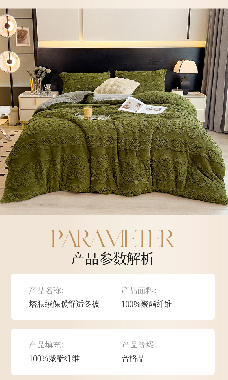 • 91家纺网 家纺一手货源 找家纺 2024新品塔肤绒保暖舒适冬被子被芯 花影-翡翠 91家纺网 家纺一手货源 找家纺 2024新品塔肤绒保暖舒适冬被子被芯 花影-翡翠