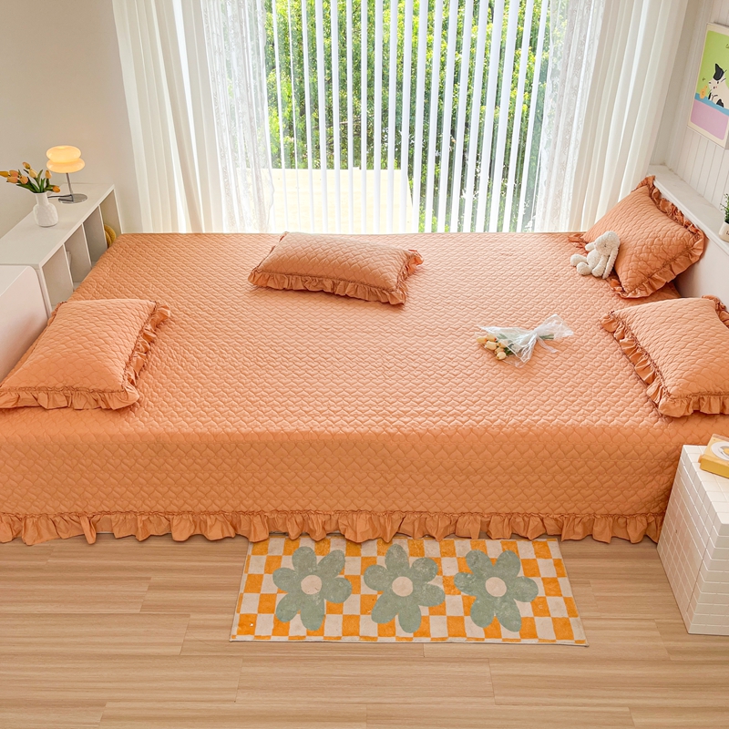 商品名称:暖居 2024支持定制纯棉榻榻米四件套全棉农村单件大炕盖纯色床单三件套系列 橙色