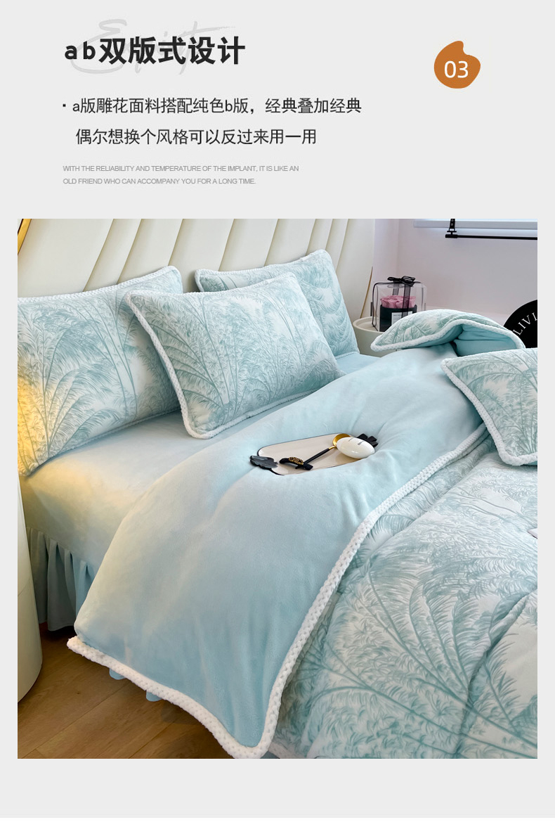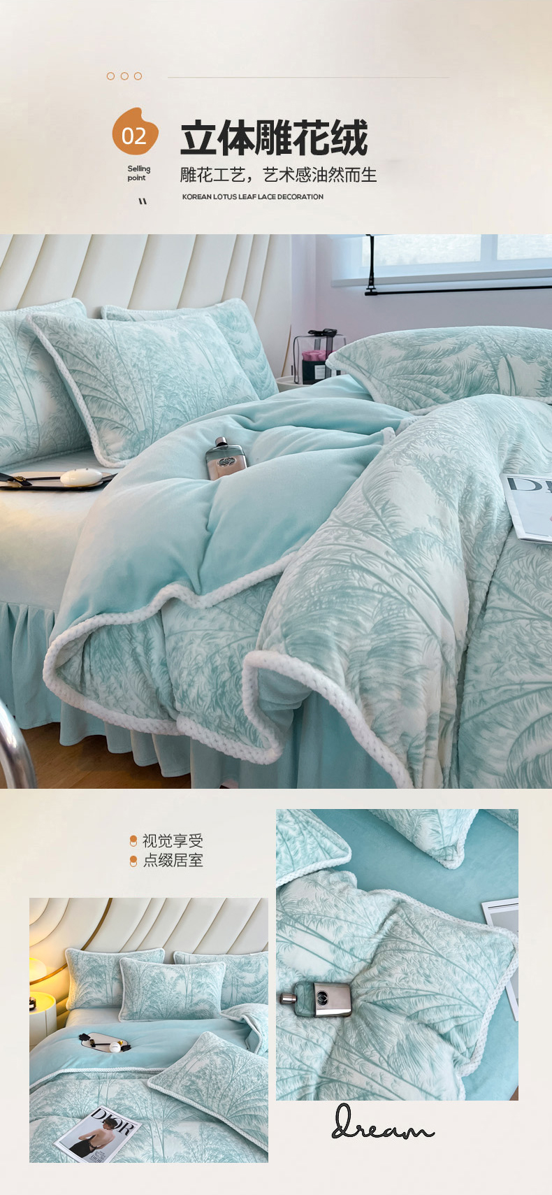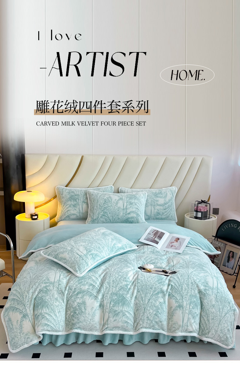 (总)首选家纺 2024新款A类立体雕花绒牛奶绒婴儿绒四件套,蝶影,花语悠然,玫瑰粉,玫瑰桔,玫瑰绿,千叶-粉,千叶-咖,水墨花-绿,水墨画-粉,水墨江南,素色主义,繁花似锦,花间风铃,欧式情怀,纤羽