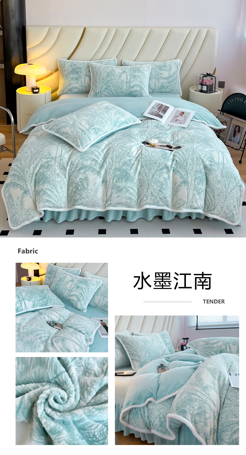 首选家纺 2024新款立体雕花绒四件套 水墨江南