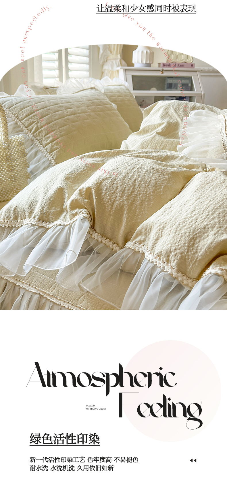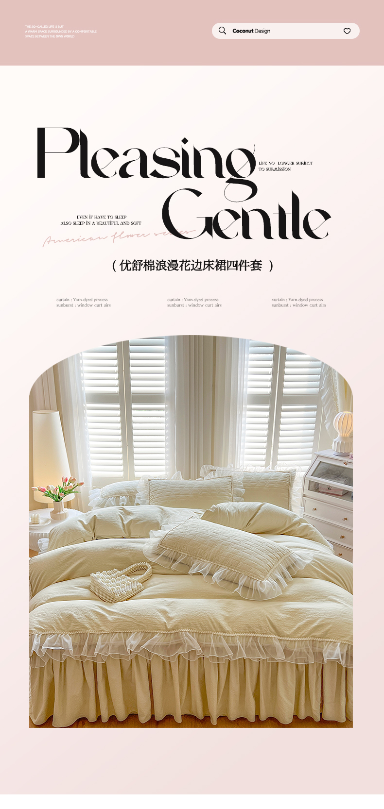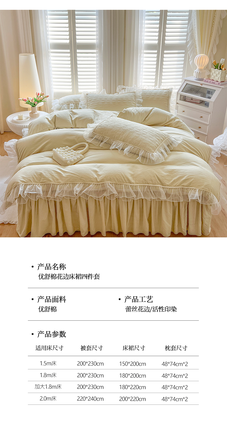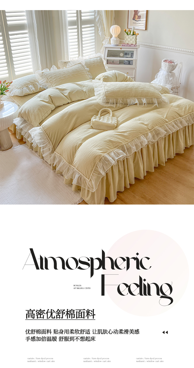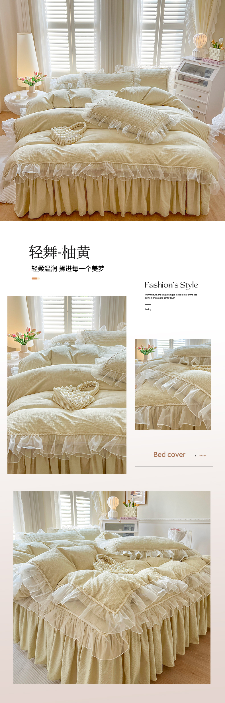 商品名称:网红馆(ck家纺) 2025新款优舒棉花边床裙四件套-轻舞 轻舞-柚黄