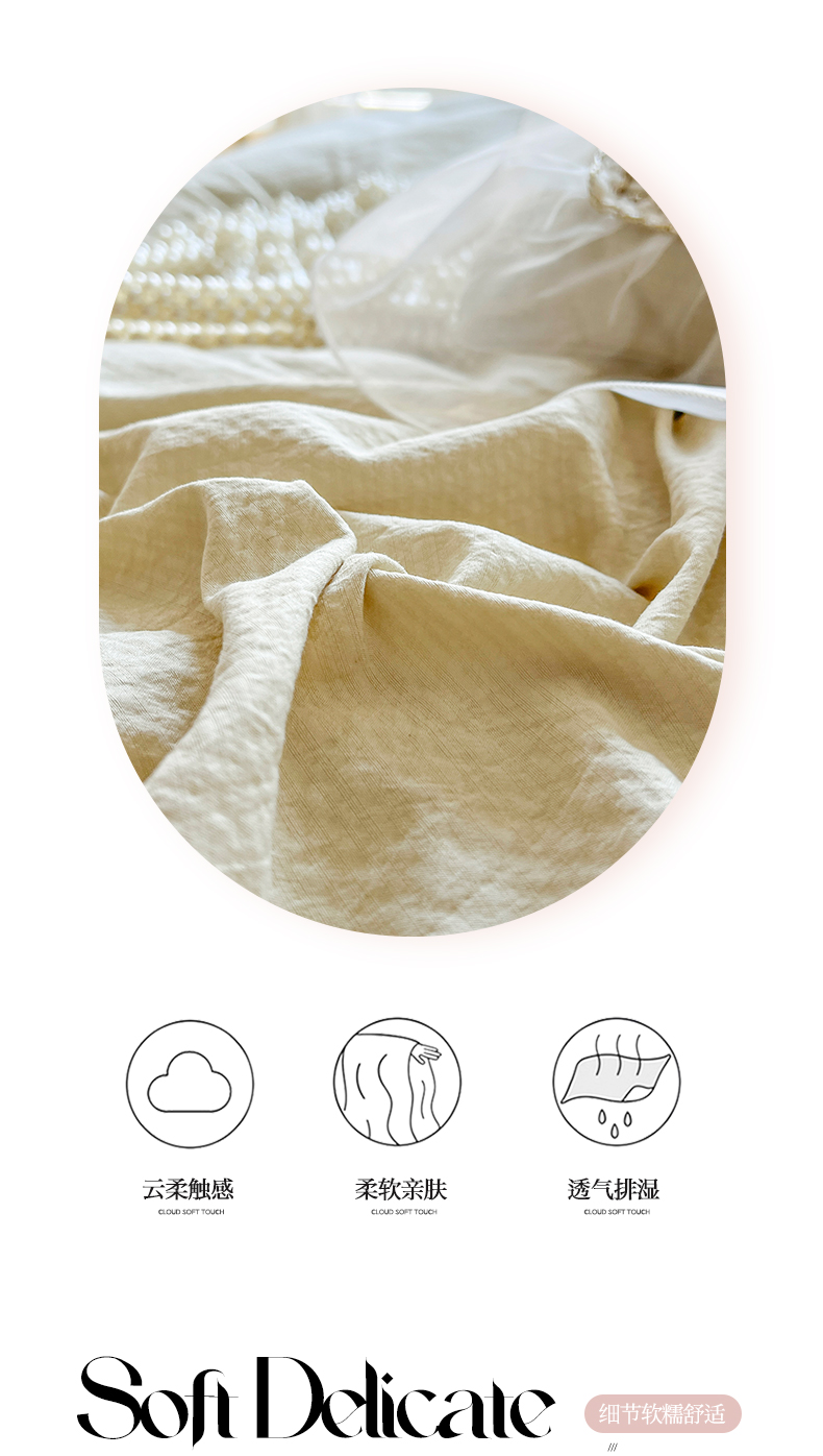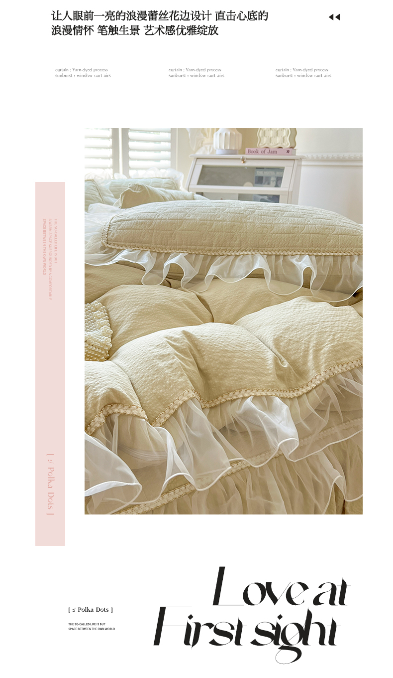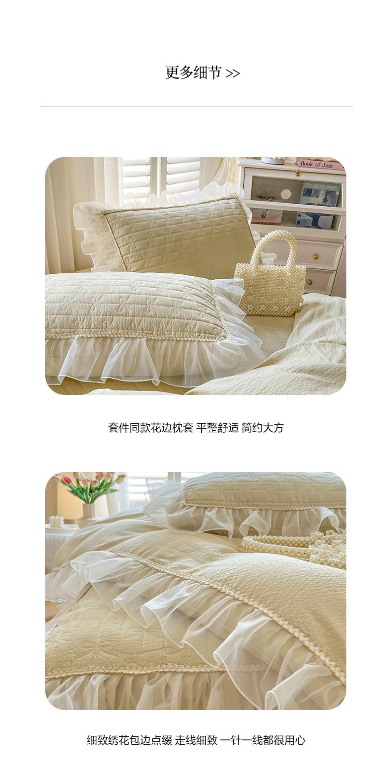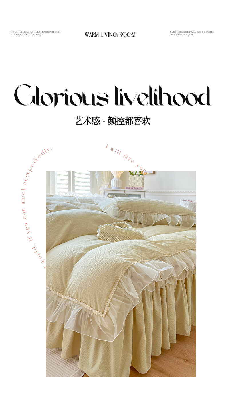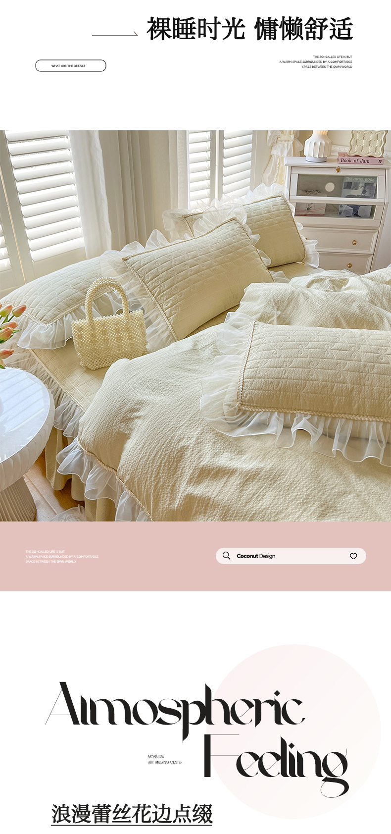 商品名称:网红馆(ck家纺) 2025新款优舒棉花边床裙四件套-轻舞 轻舞-柚黄