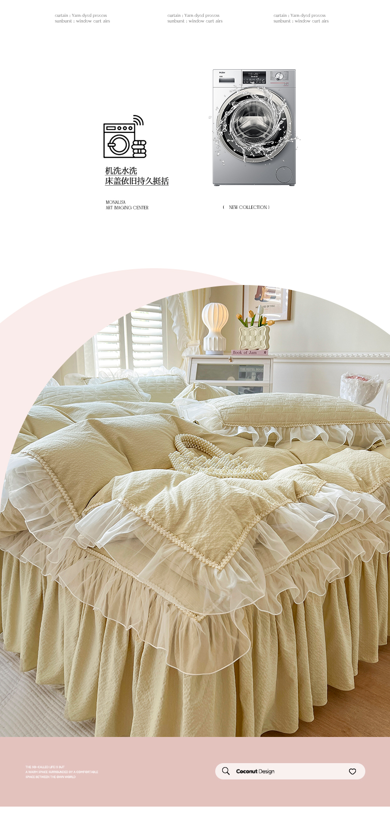 (总)网红馆(ck家纺) 2025新款色织提花牛奶绒床裙四件套-洛丽塔系列,洛丽塔-豆沙,洛丽塔-蓝色,洛丽塔-米色