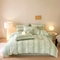 金爱家 2024新品全消光A类纯色獭兔毛绒立体牛奶绒兔毛雕花350克四件套 兔毛百合花绿色