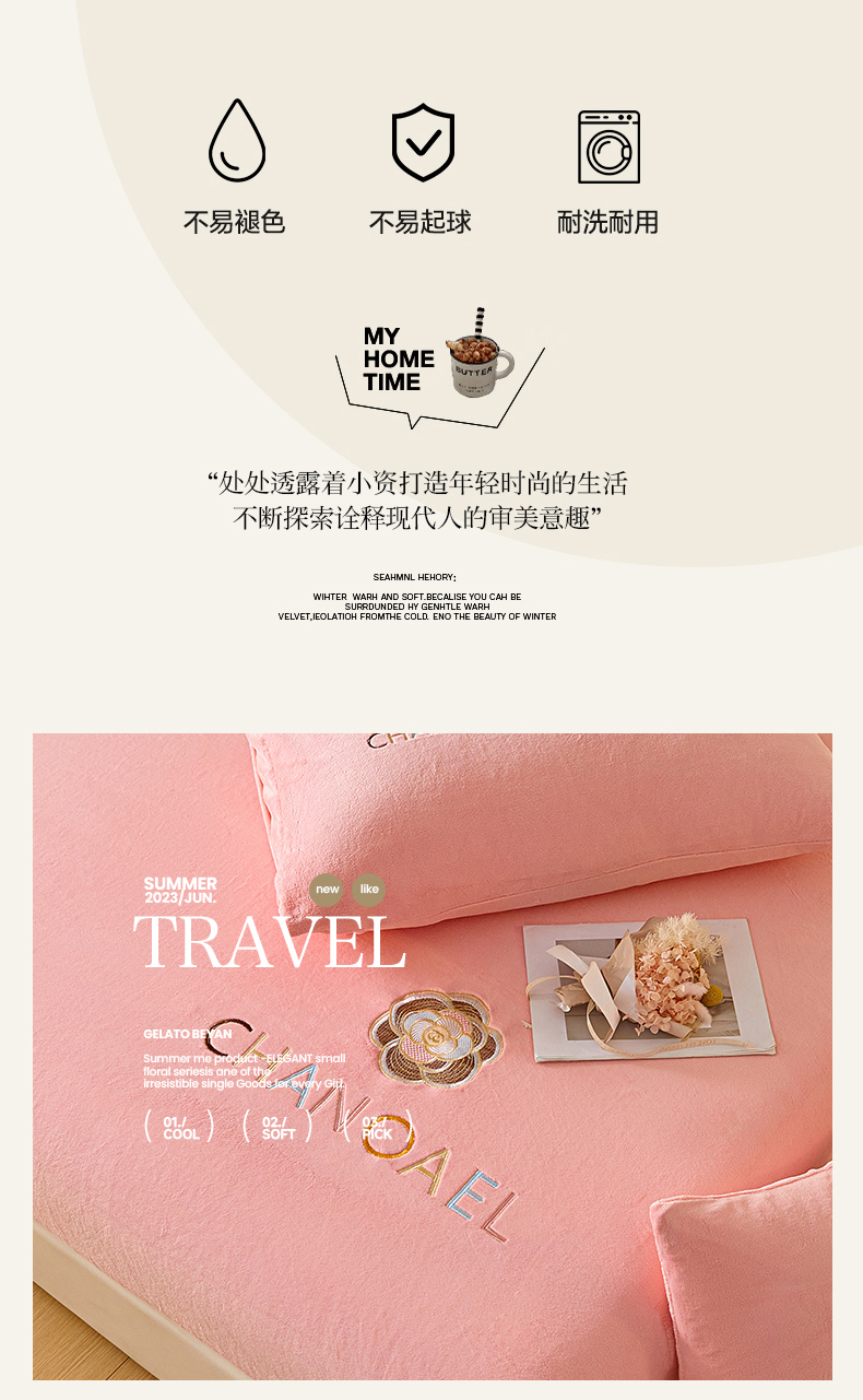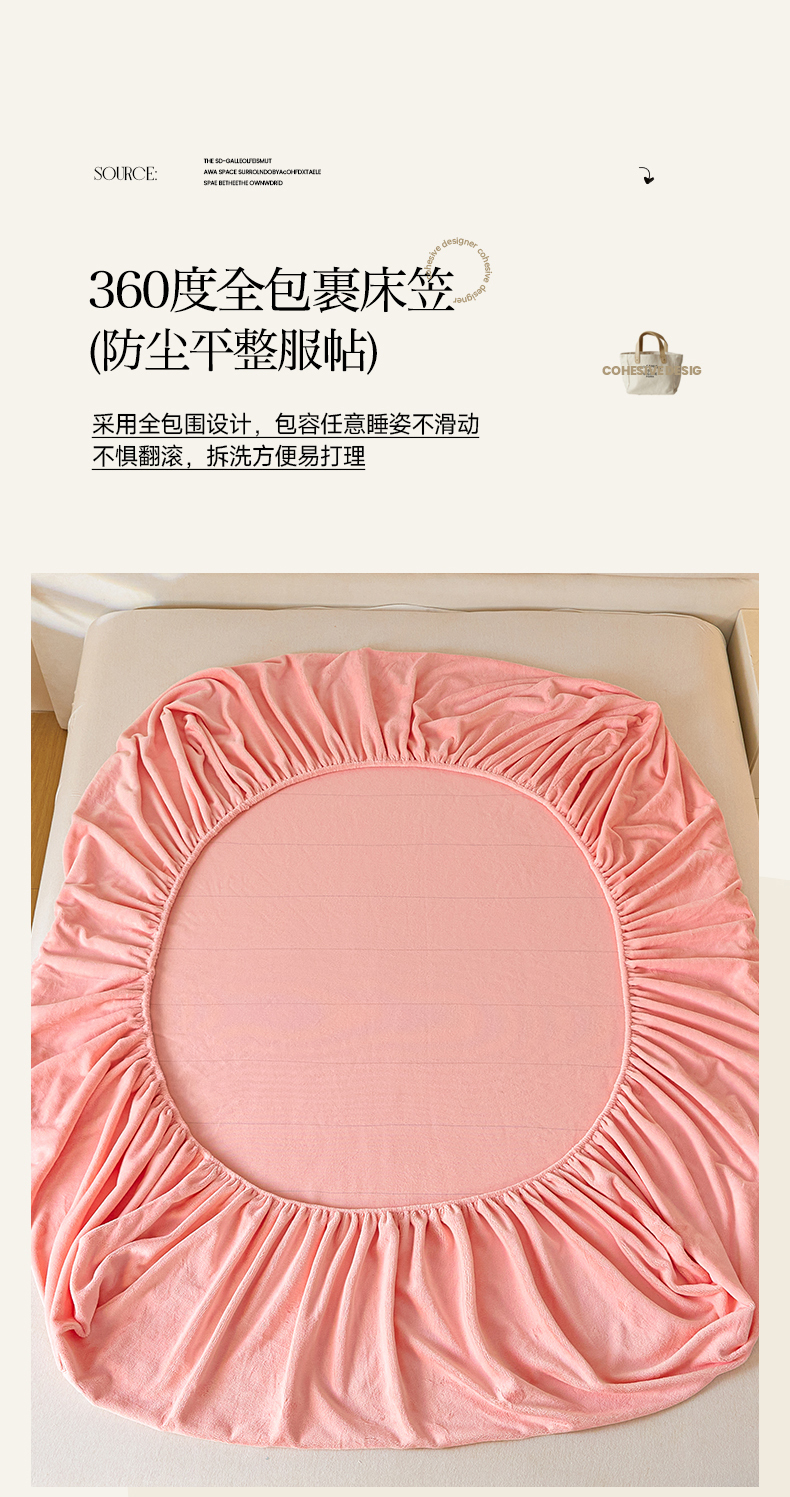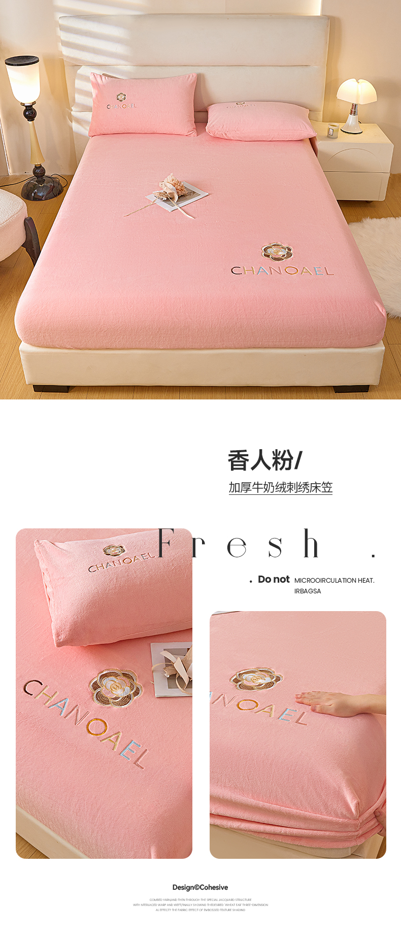 • 91家纺网 家纺一手货源 找家纺 摩妮卡 2025新品牛奶绒刺绣床笠床垫保护三件套-山茶花 香人粉