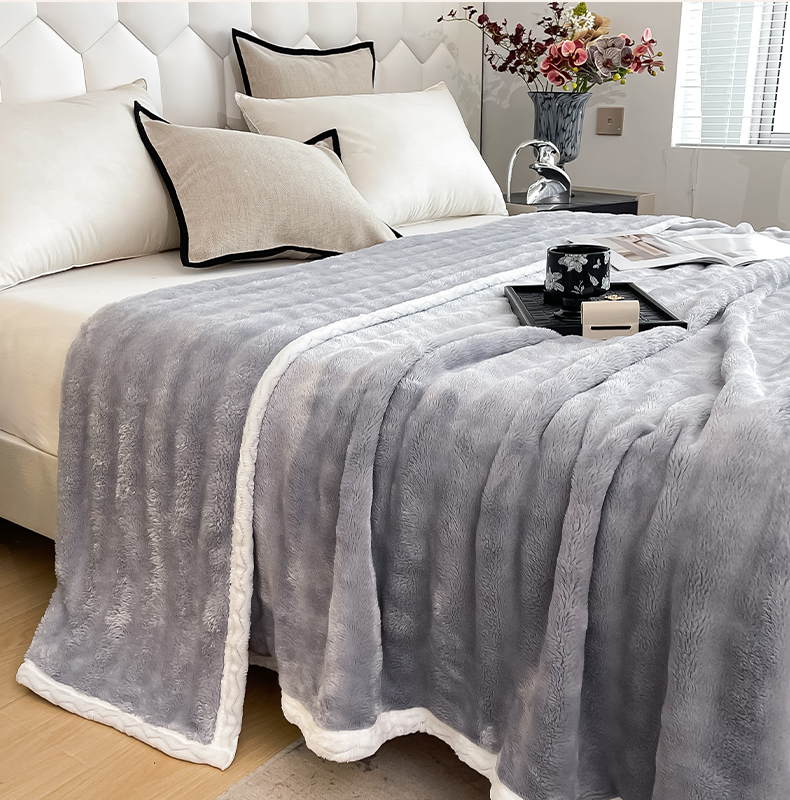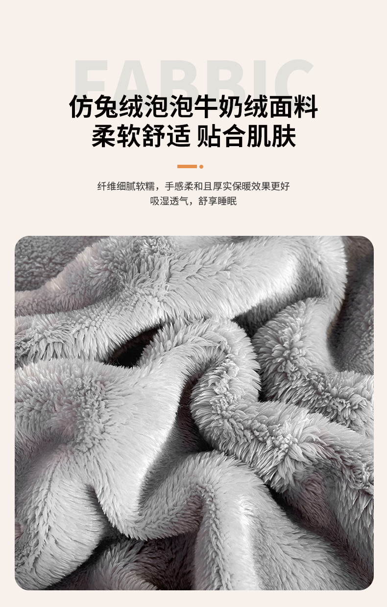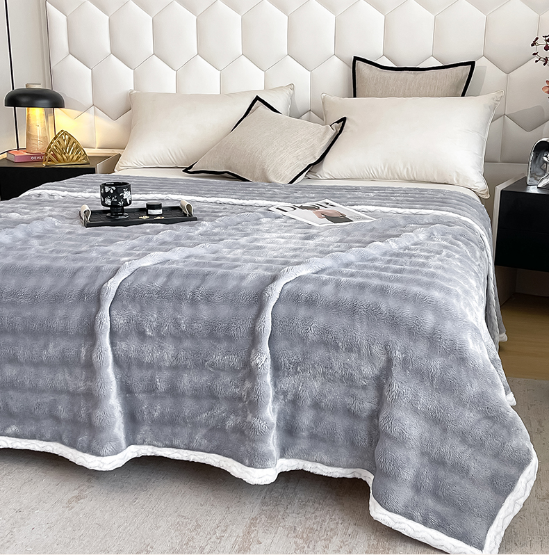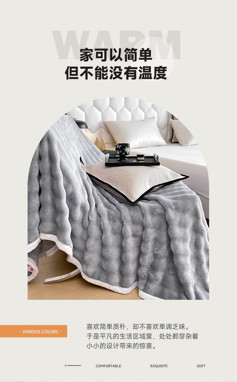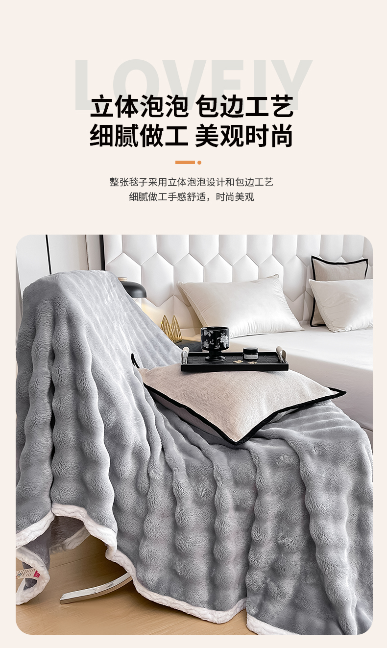 商品名称:丹本家纺 2025新款仿兔毛泡泡绒牛奶绒毛毯盖毯包边毛毯 银灰