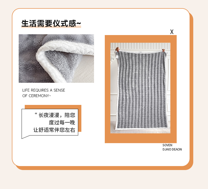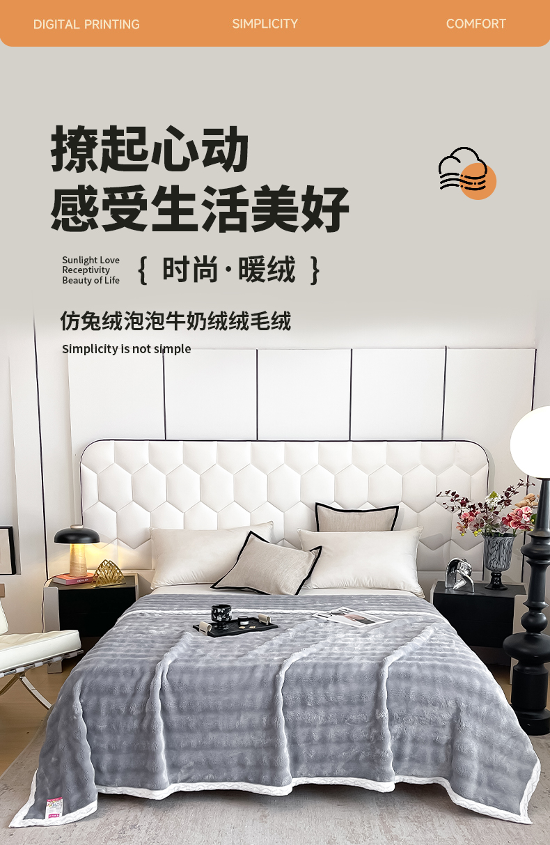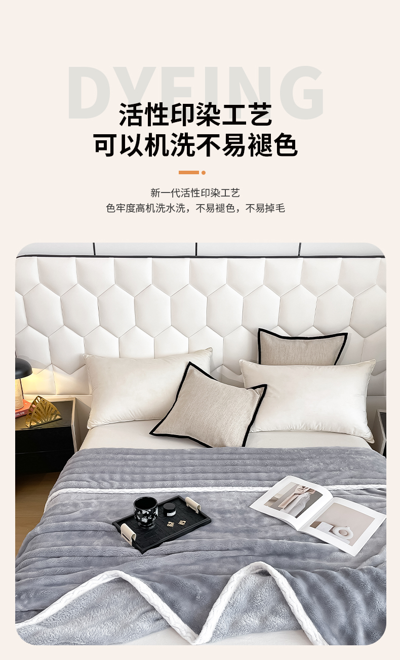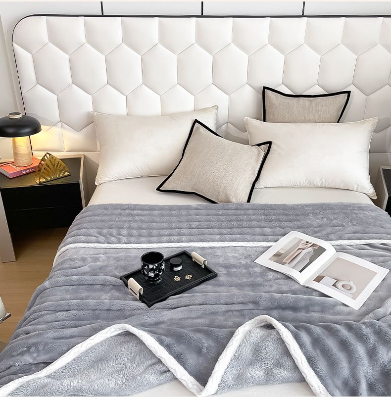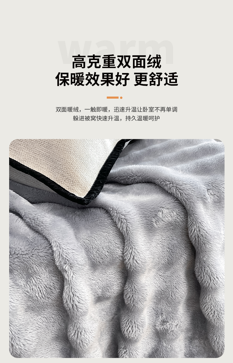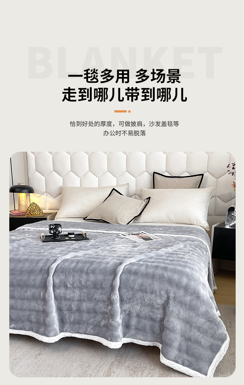 商品名称:丹本家纺 2025新款仿兔毛泡泡绒牛奶绒毛毯盖毯包边毛毯 银灰
