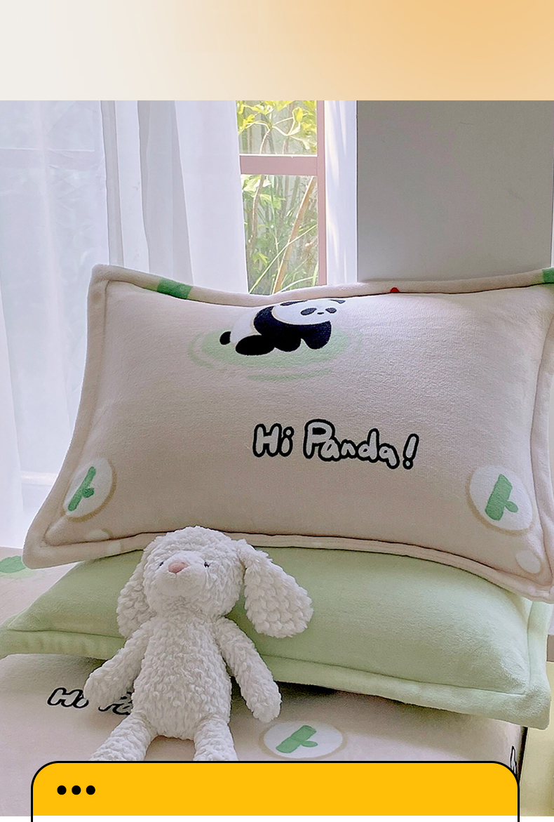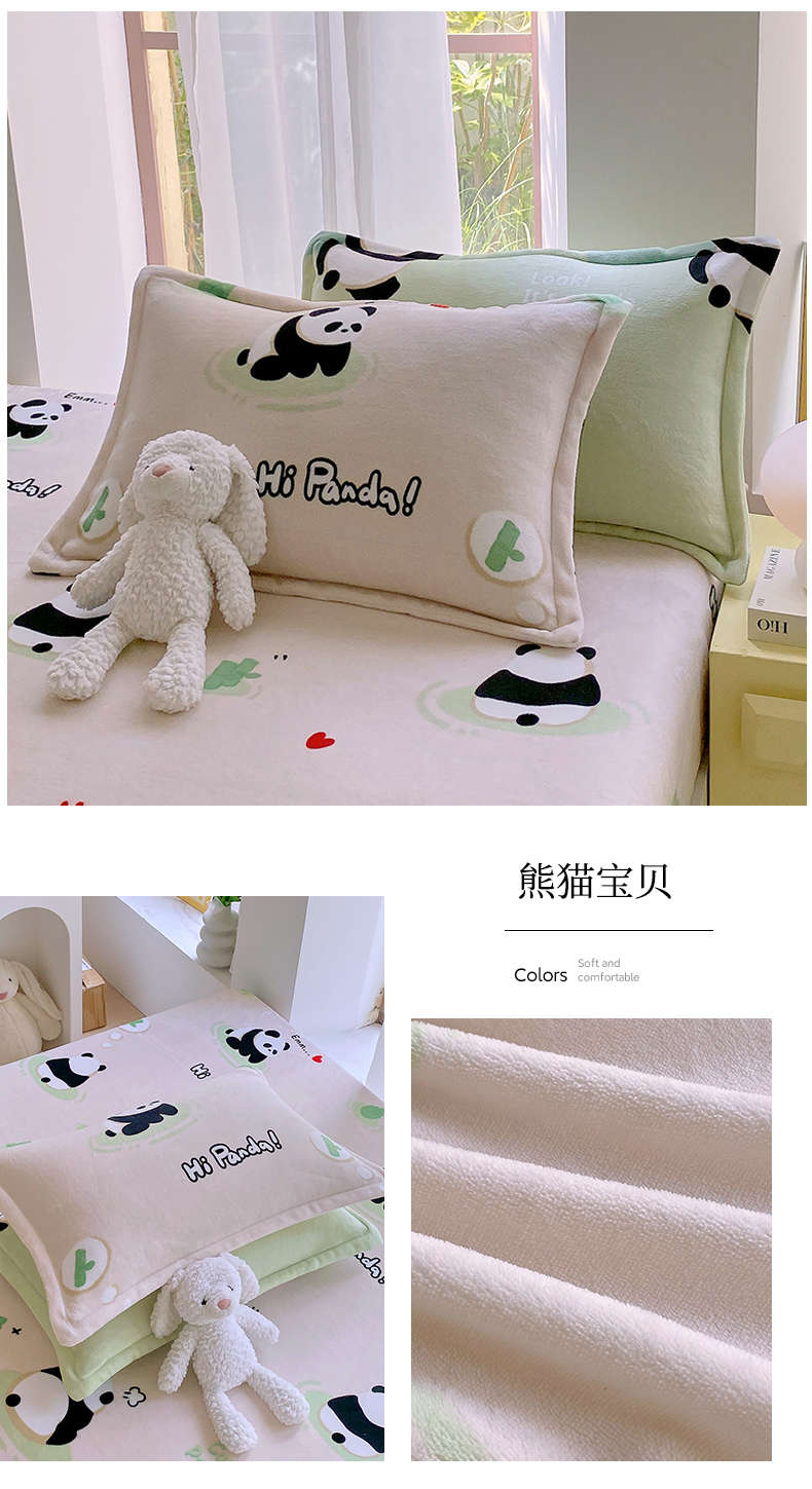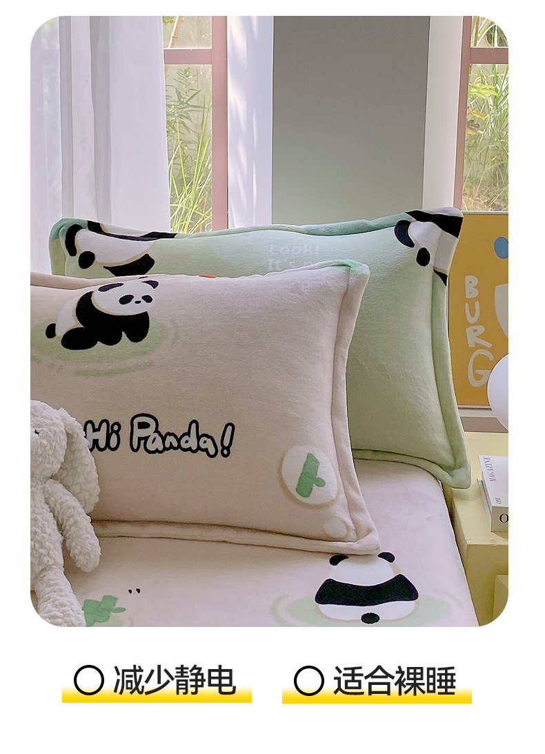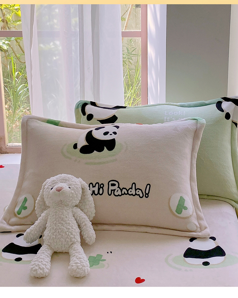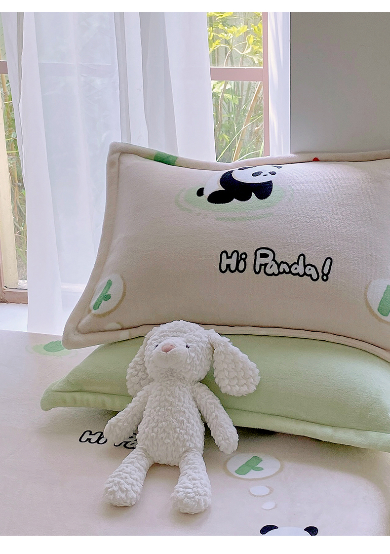 商品名称:凯儿家纺 2024新款A类牛奶绒印花枕套 熊猫宝贝