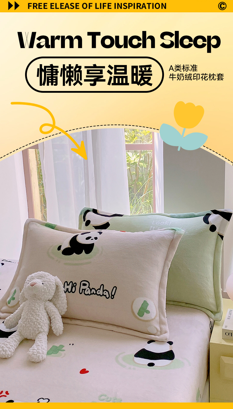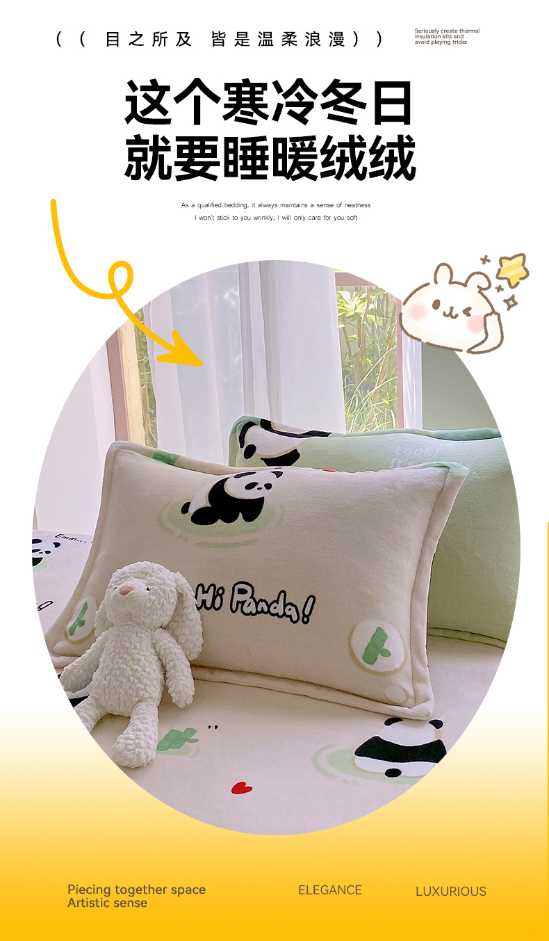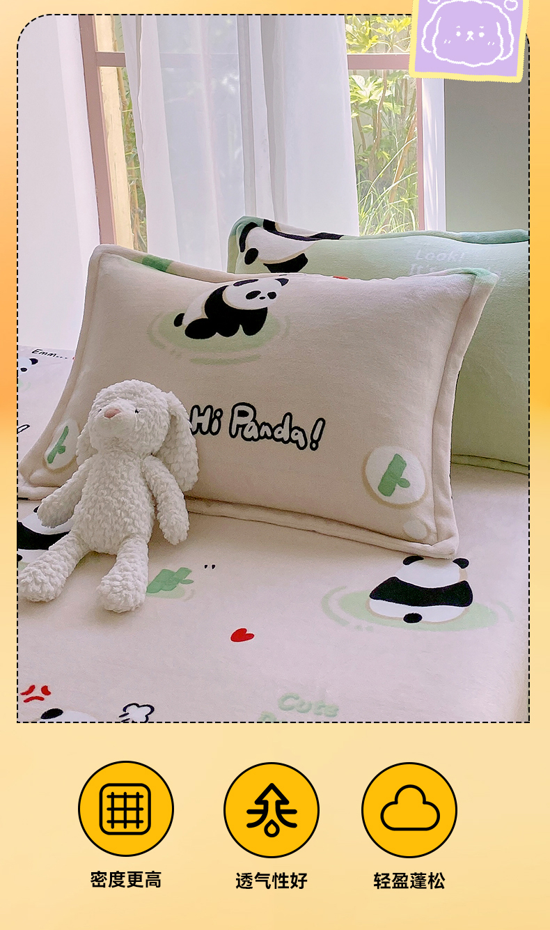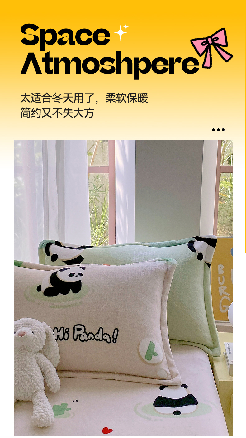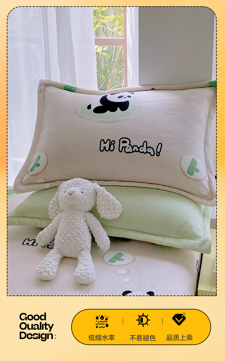 商品名称:凯儿家纺 2024新款A类牛奶绒印花枕套 熊猫宝贝