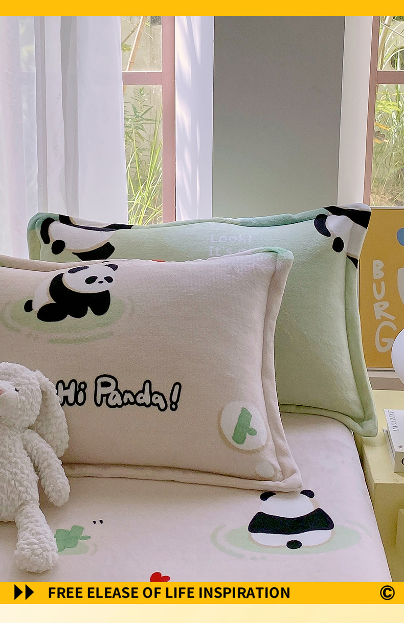 凯儿家纺 2024新款A类牛奶绒印花枕套 熊猫宝贝