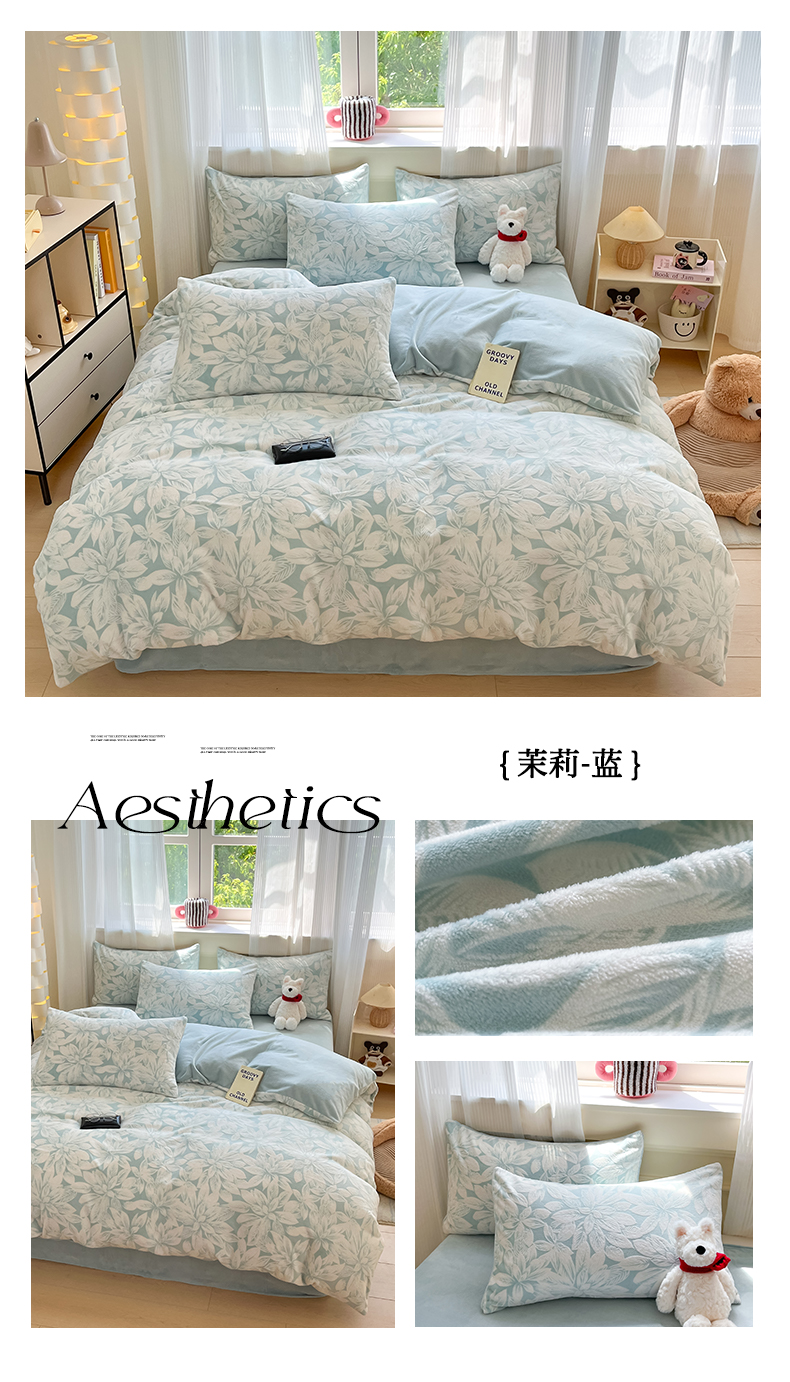 莱茵家居 2024新款a类加厚立体雕花牛奶绒四件套 茉莉-蓝