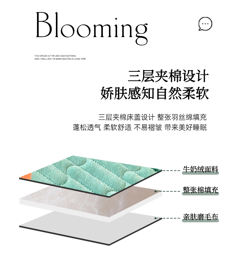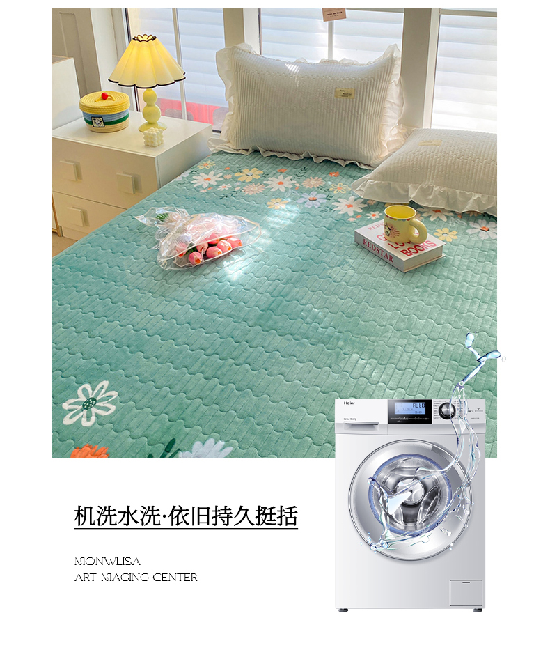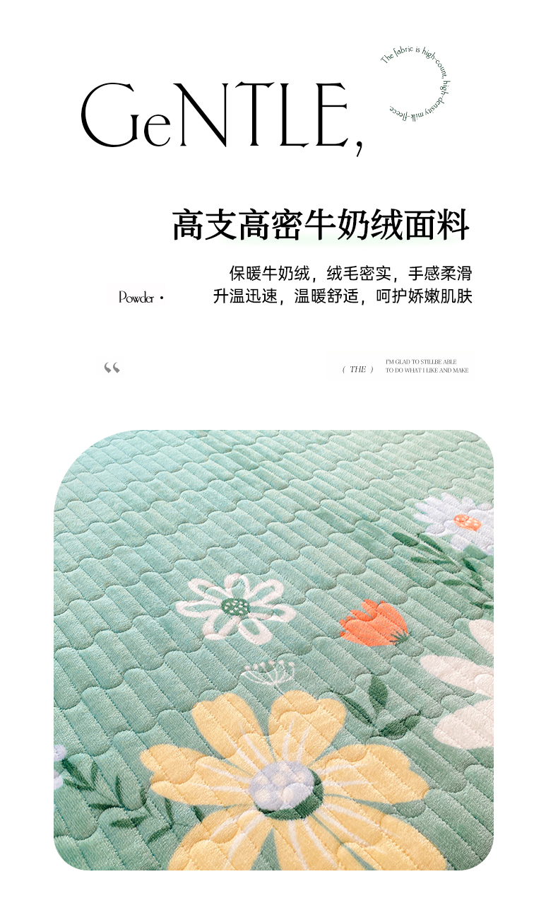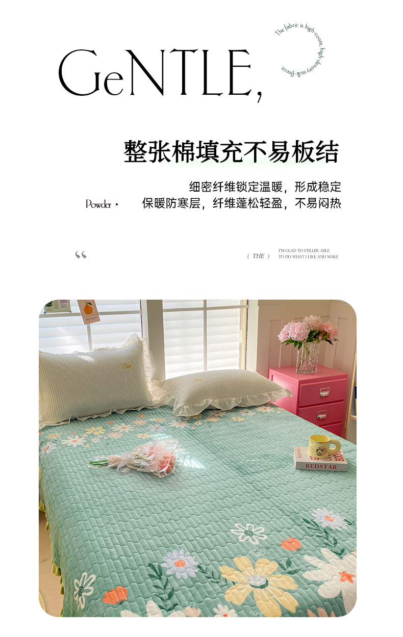 商品名称:胜权家纺 2024秋冬新款印花牛奶绒加厚保暖圆角花边夹棉床盖 花开浪漫绿
