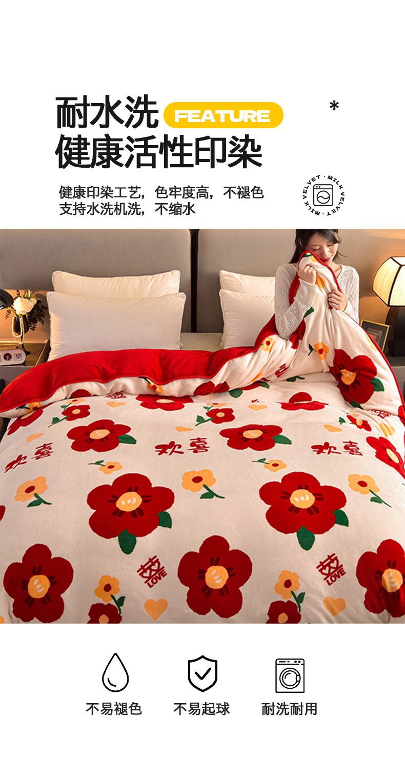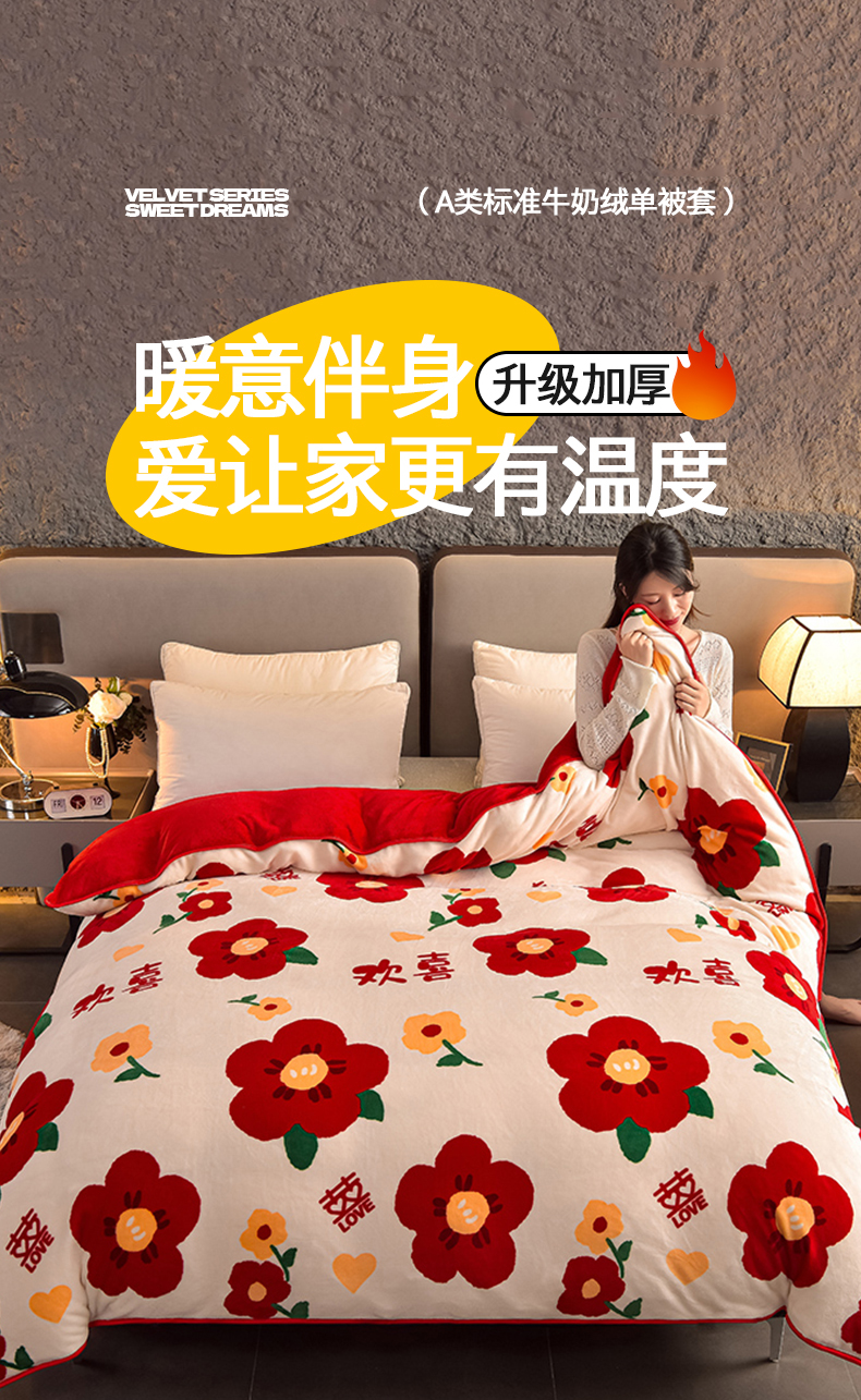 佳品居 2025新款A类牛奶绒印花单被套 满欣欢喜