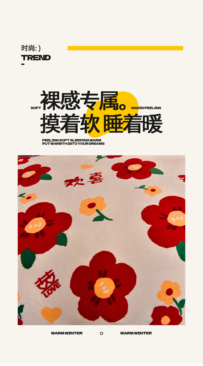 商品名称:佳品居 2025新款A类牛奶绒印花单被套 满欣欢喜