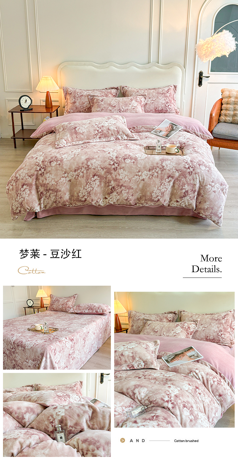 商品名称:菡宝 2024新款8斤240g全消光牛奶绒系列单被套 梦莱-豆沙红