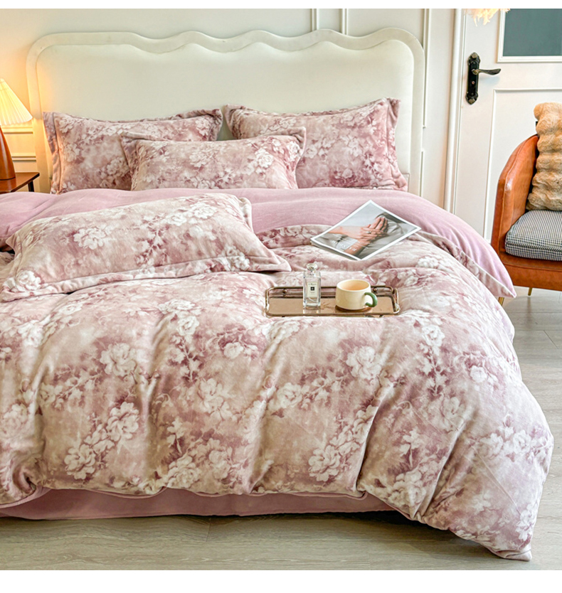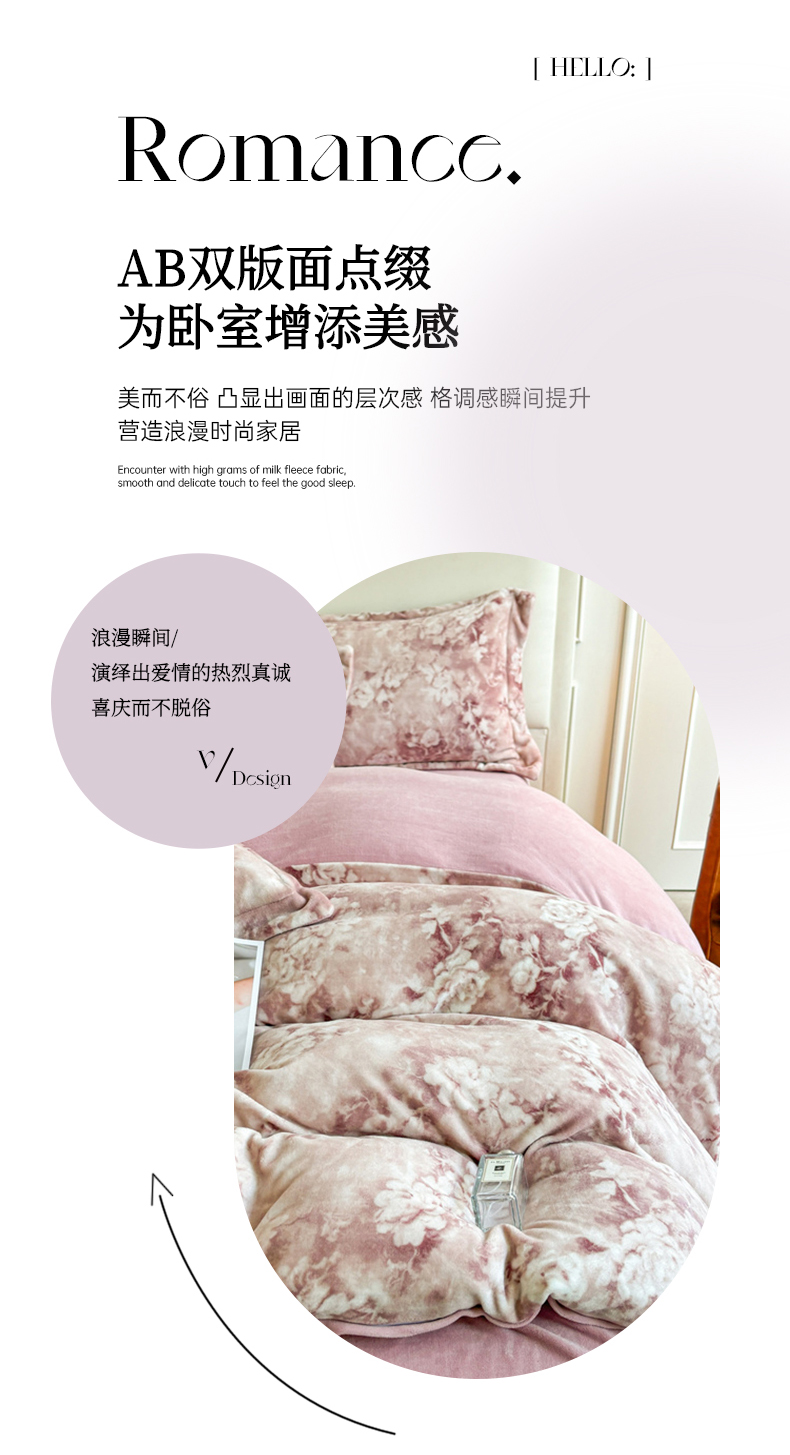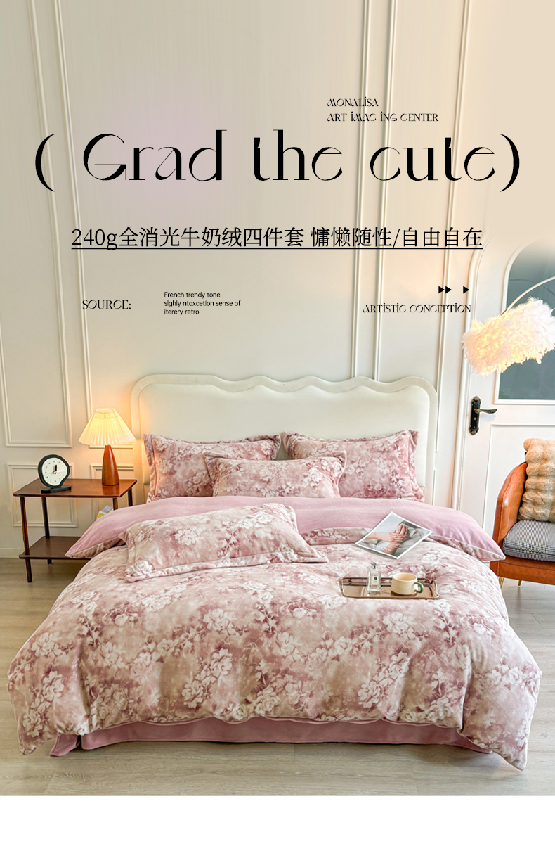 (总)菡宝2025新款工艺款贝壳边雕花绒简约良品风牛奶绒四件套-梵西系列 支持定做定制尺寸,梵西灰,梵西紫,米娅灰,米娅粉,洛璃灰,洛璃紫