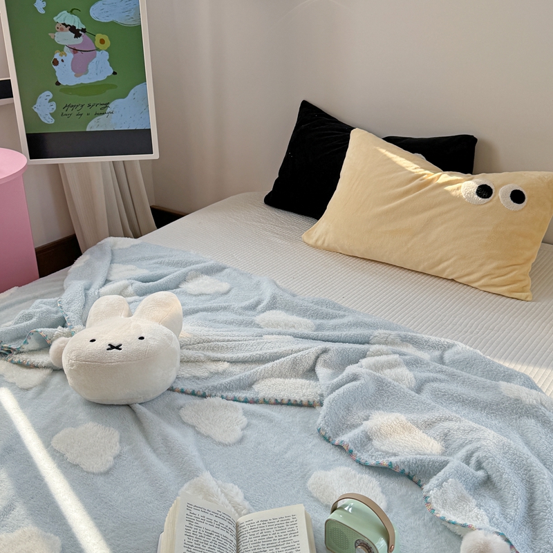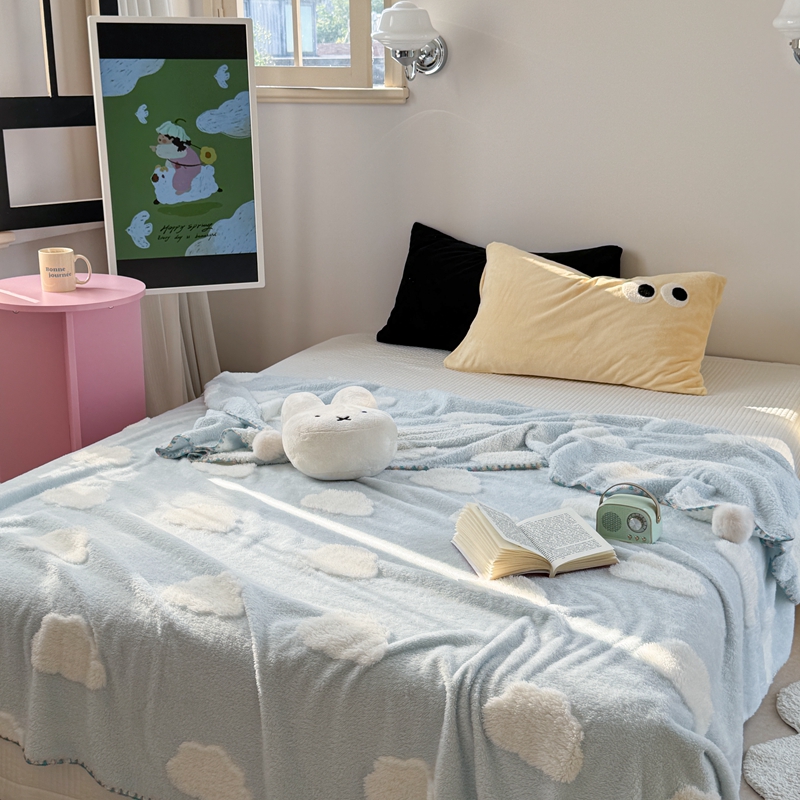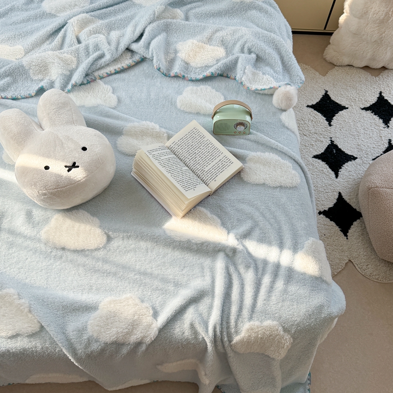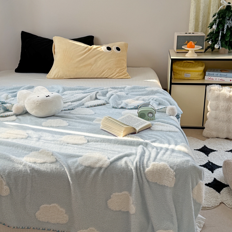 商品名称:柚子YOUTH 2024新款毛球款云柔提花双面毯 蓝底云朵