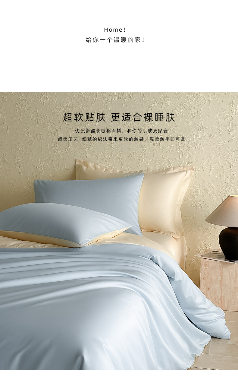 猪先生 2024新款A类全棉高支高密纯棉单被套 帝蓝+奶昔白