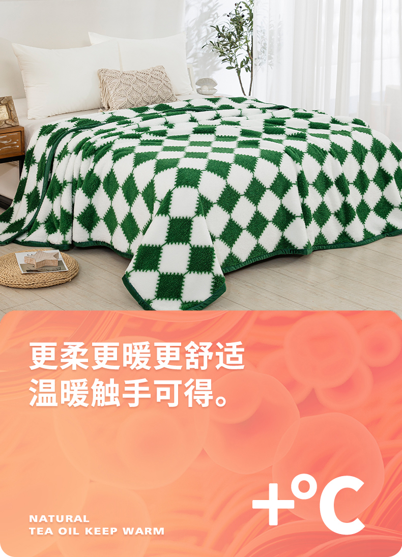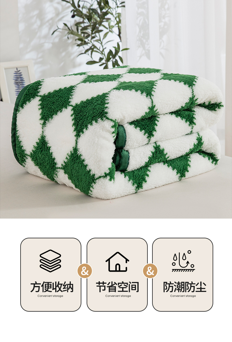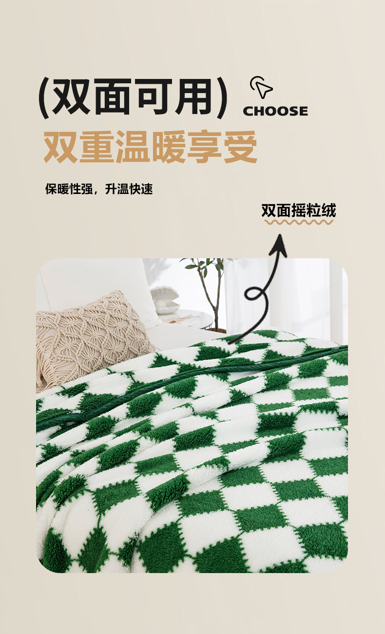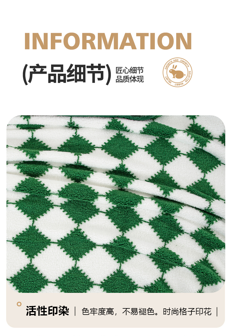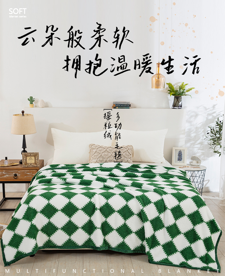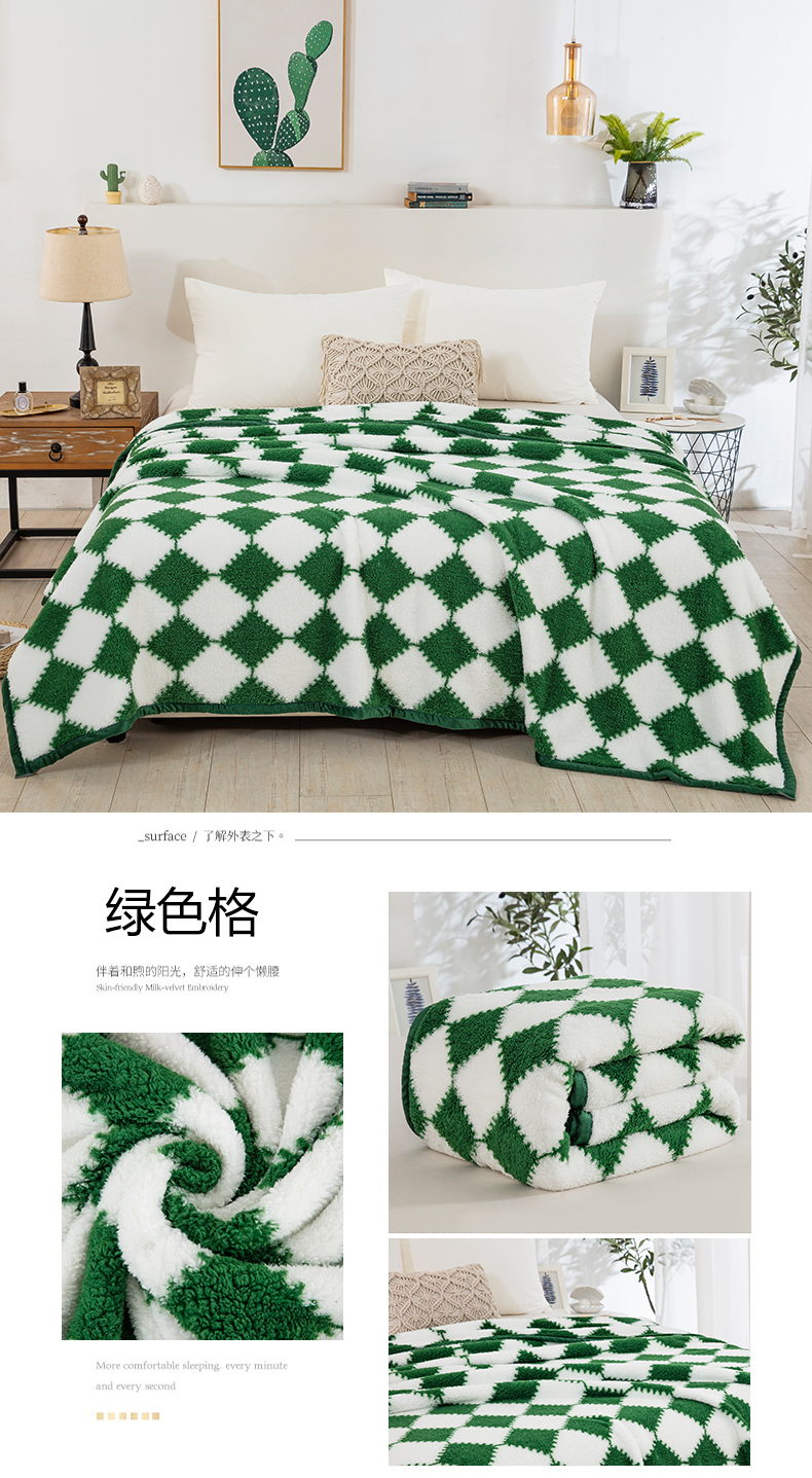 商品名称:一左一右 2024新款320g高克重加厚格子摇粒绒毛毯舒棉绒盖毯多功能毯子外贸跨境电商 绿色格