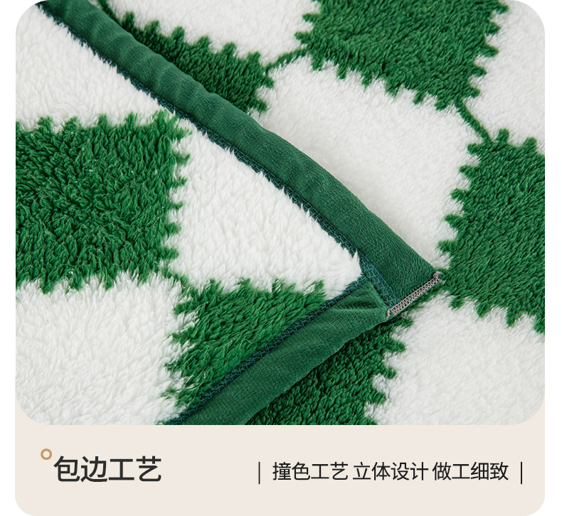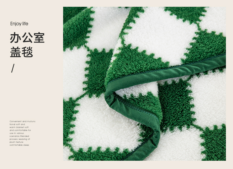 一左一右 2024新款320g高克重加厚格子摇粒绒毛毯舒棉绒盖毯多功能毯子外贸跨境电商 绿色格