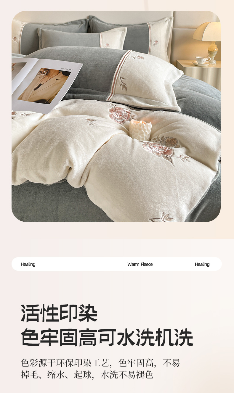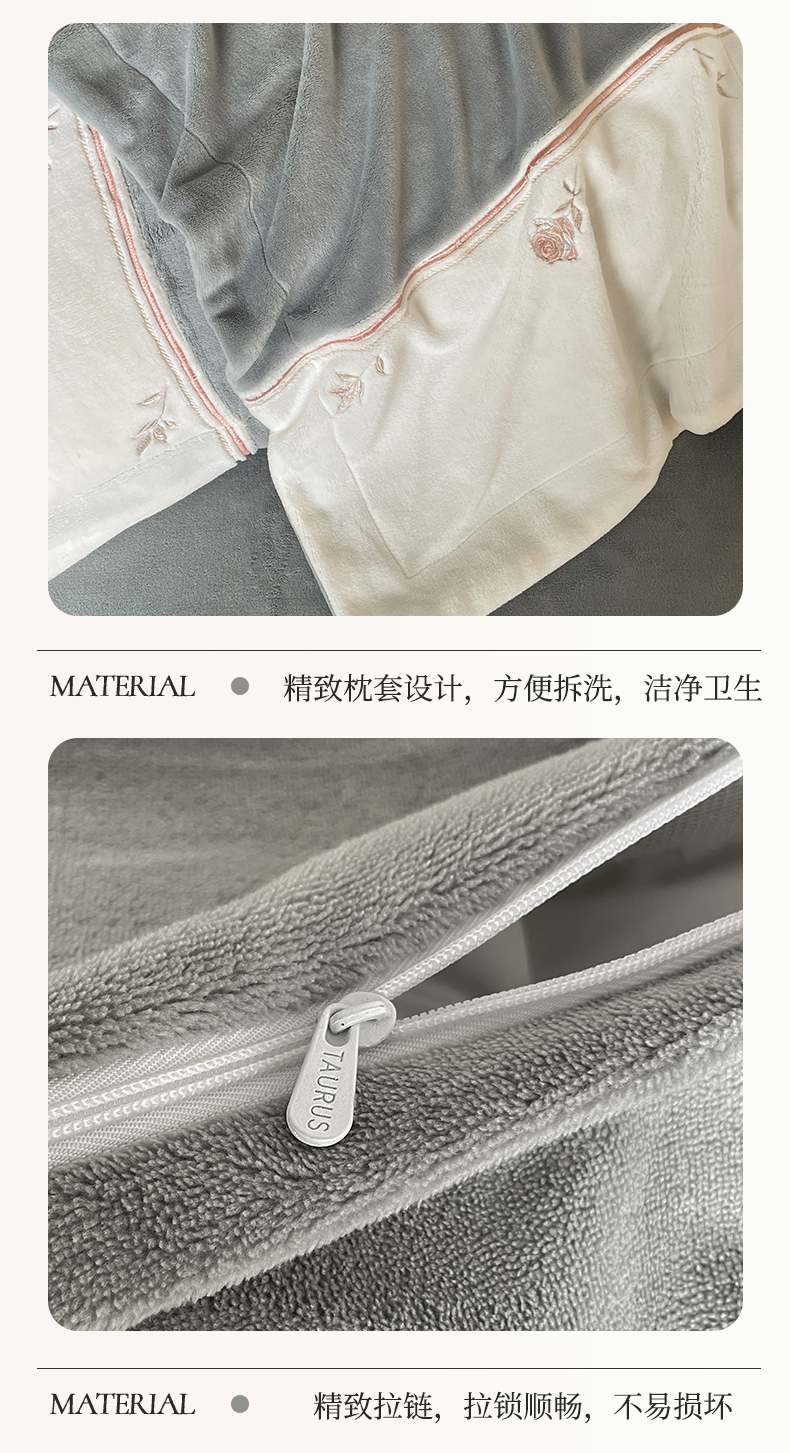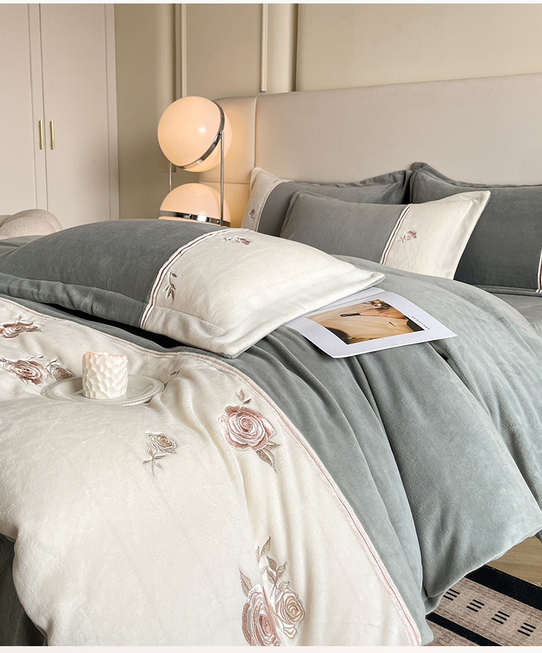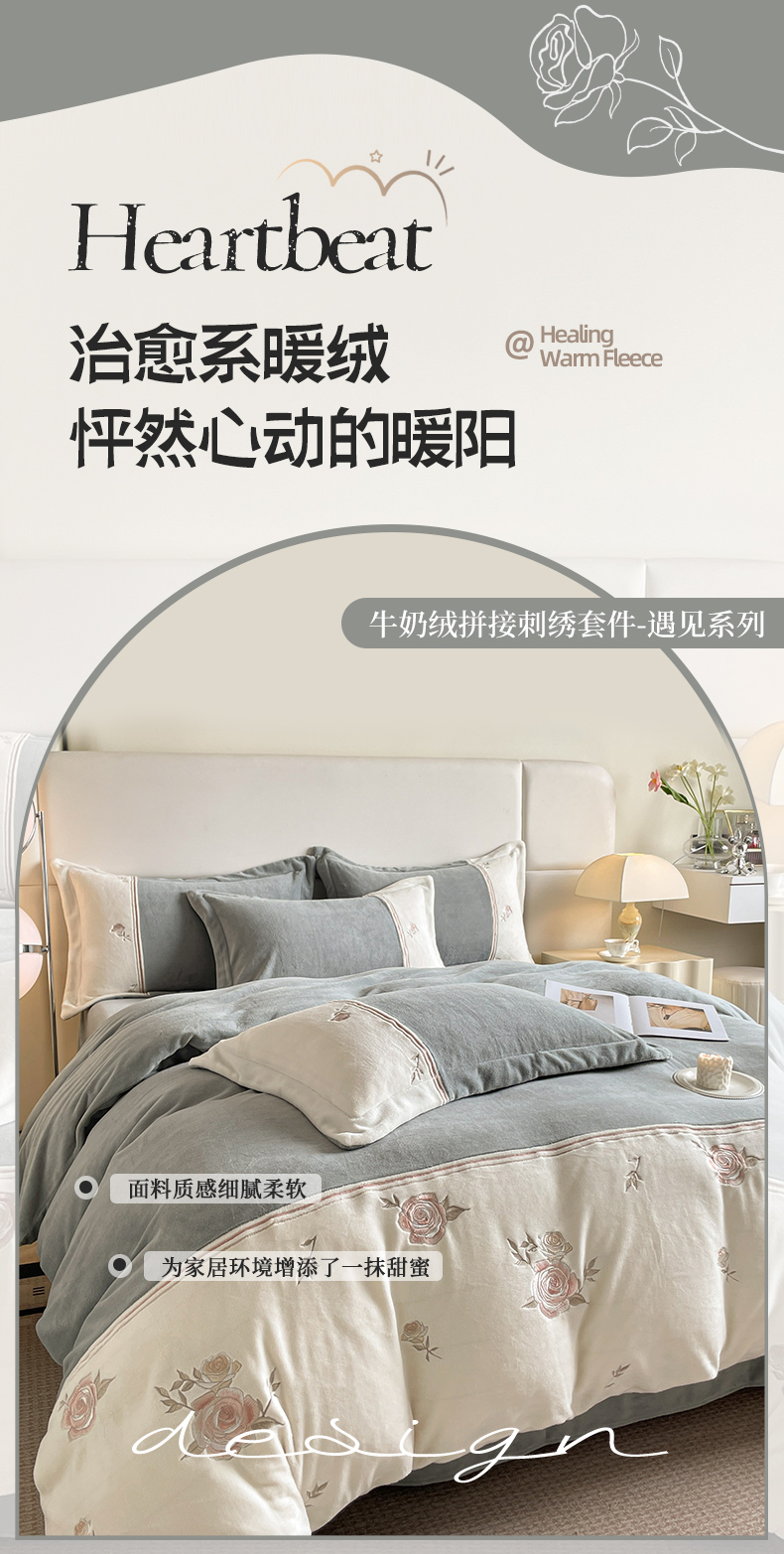 金牛座家纺 2025新款牛奶绒拼接刺绣四件套-遇见系列 遇见-浅灰