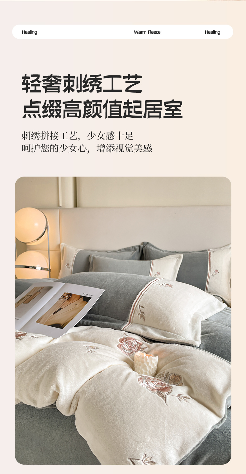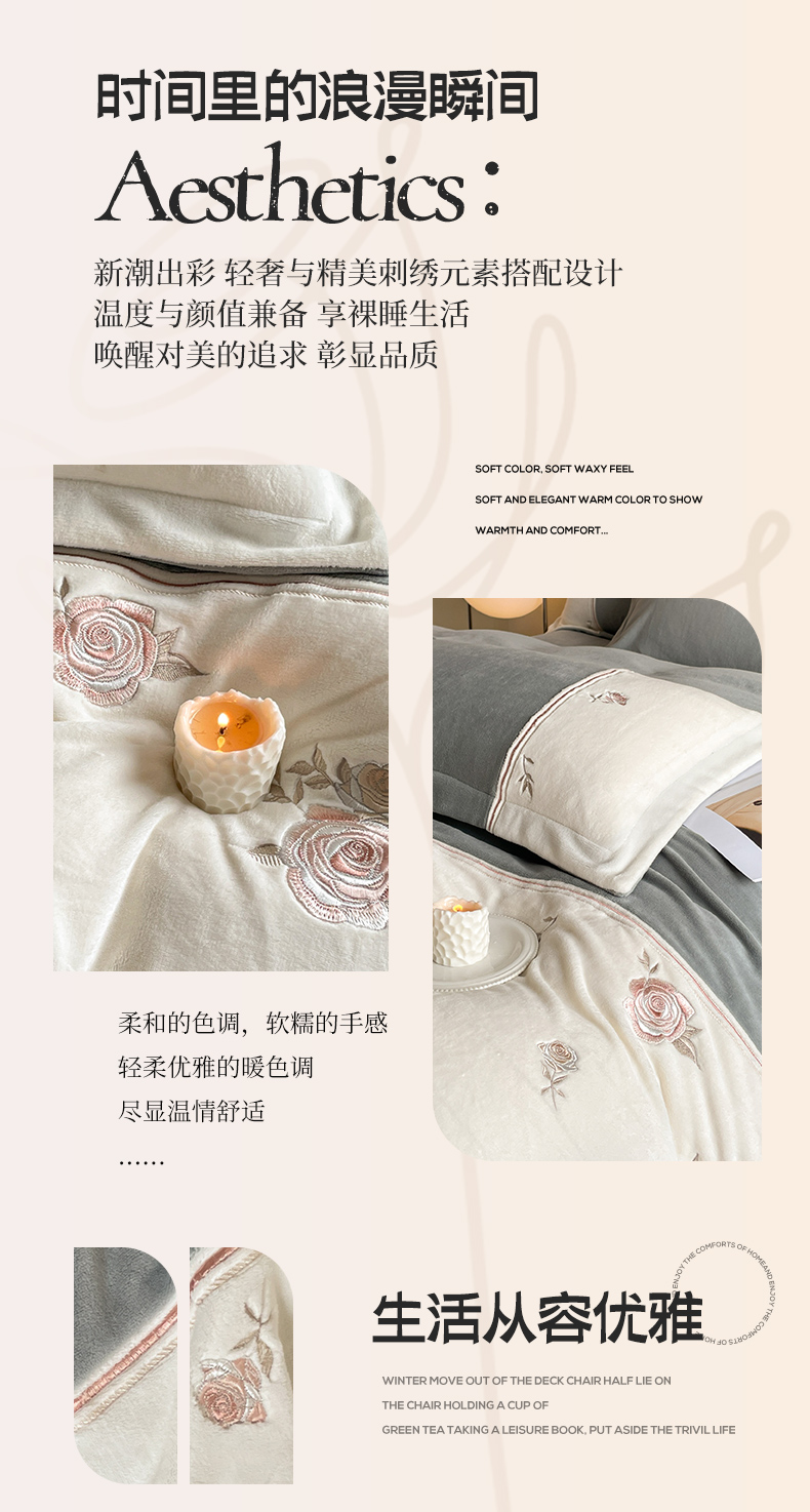 (总)金牛座家纺 2025新款婴儿绒刺绣提花四件套凯艺系列四件套,凯艺-豆沙粉,凯艺-灰,凯艺-精致蓝,凯艺-奶白,凯艺-香槟