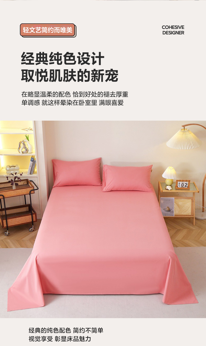 商品名称:晶缦家纺 2024新款全棉13376纯色喷气全棉磨毛单品床单 暖芸馨-蕊红玉