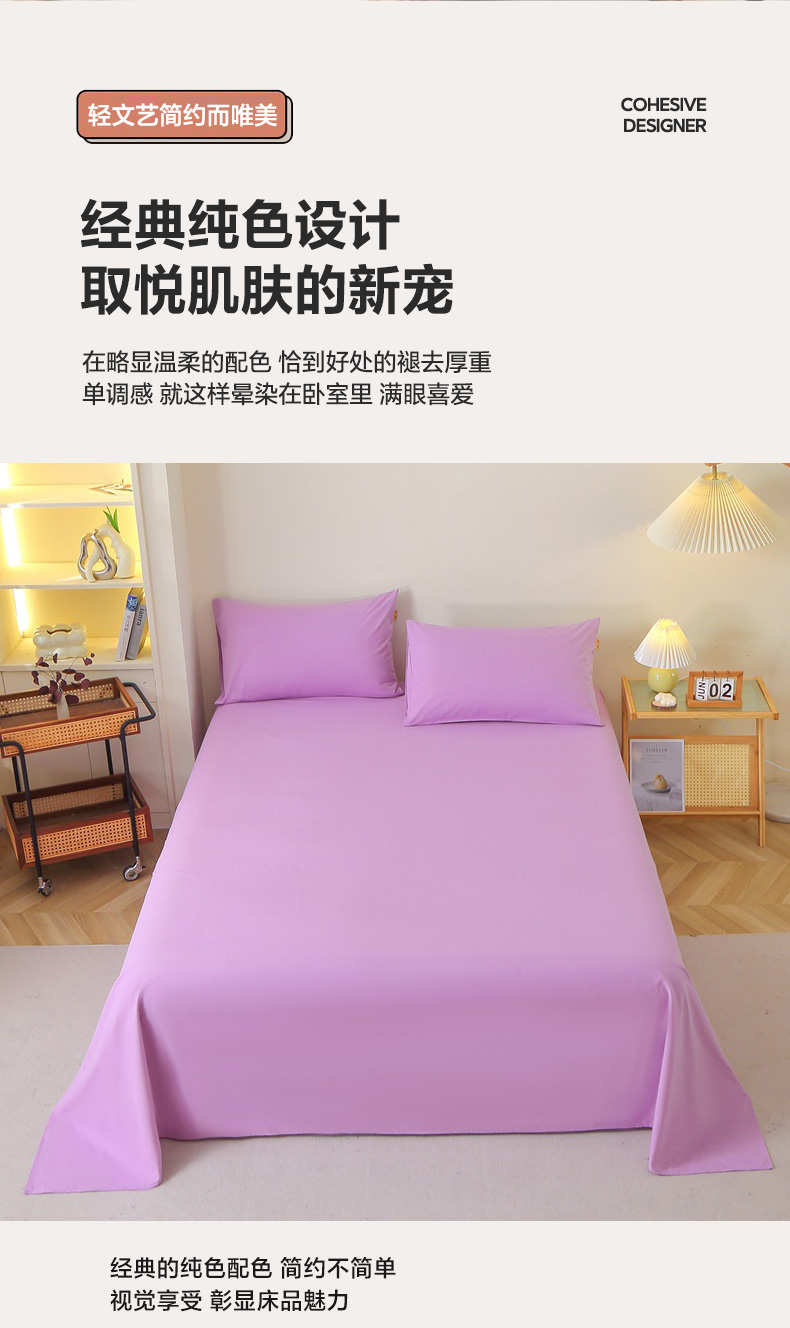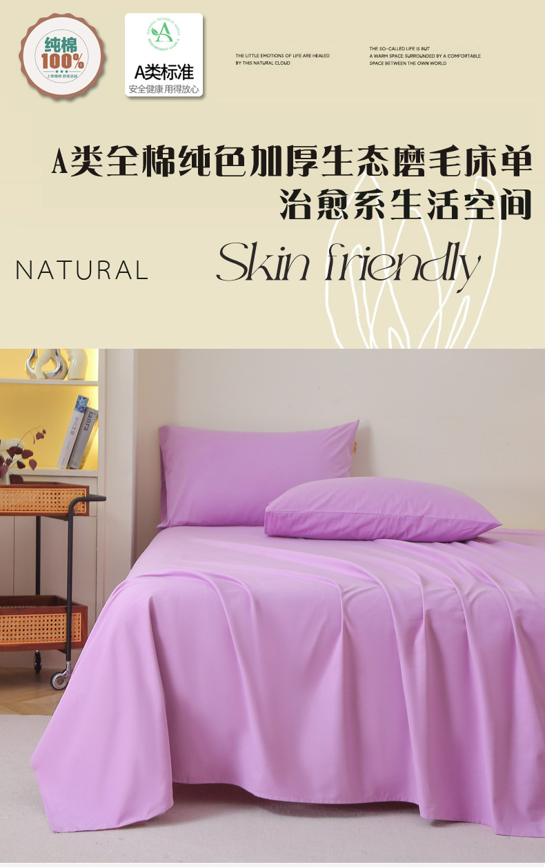 商品名称:晶缦家纺 2024新款全棉13376纯色喷气全棉磨毛单品床单 暖芸馨-雾紫色