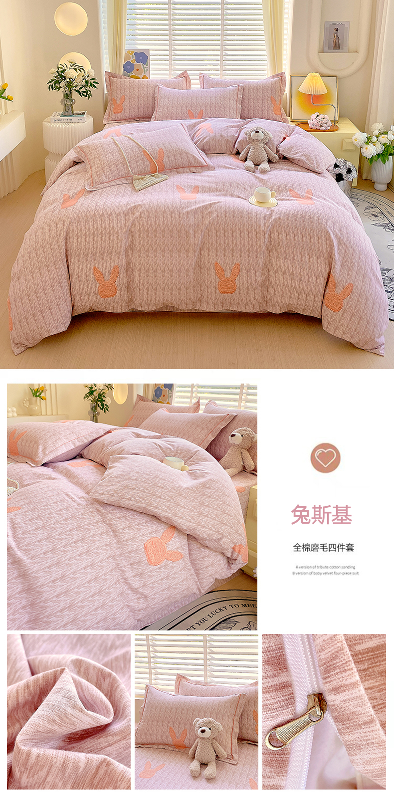 当前位置: 91家纺网 > 商品网购 > 床品套件 > 四件套 > 全棉普通四件套 > 威布斯 2025新款加厚纯棉全棉磨毛三件套四件套 兔斯基
