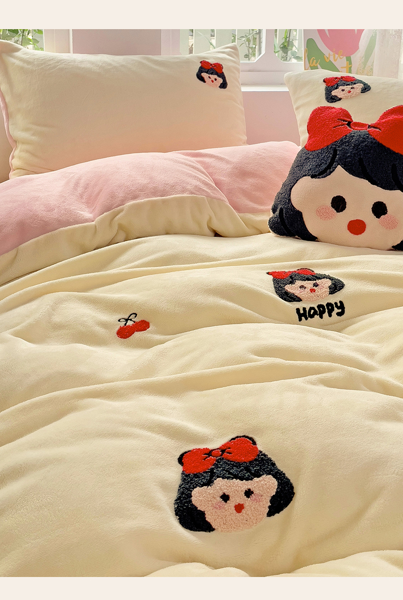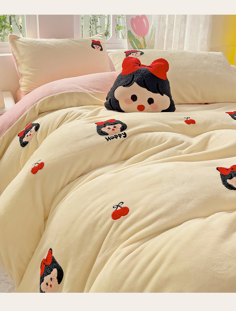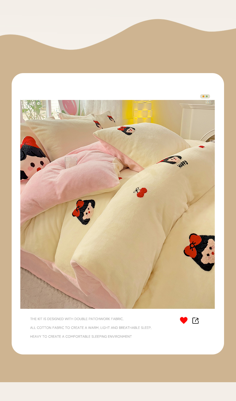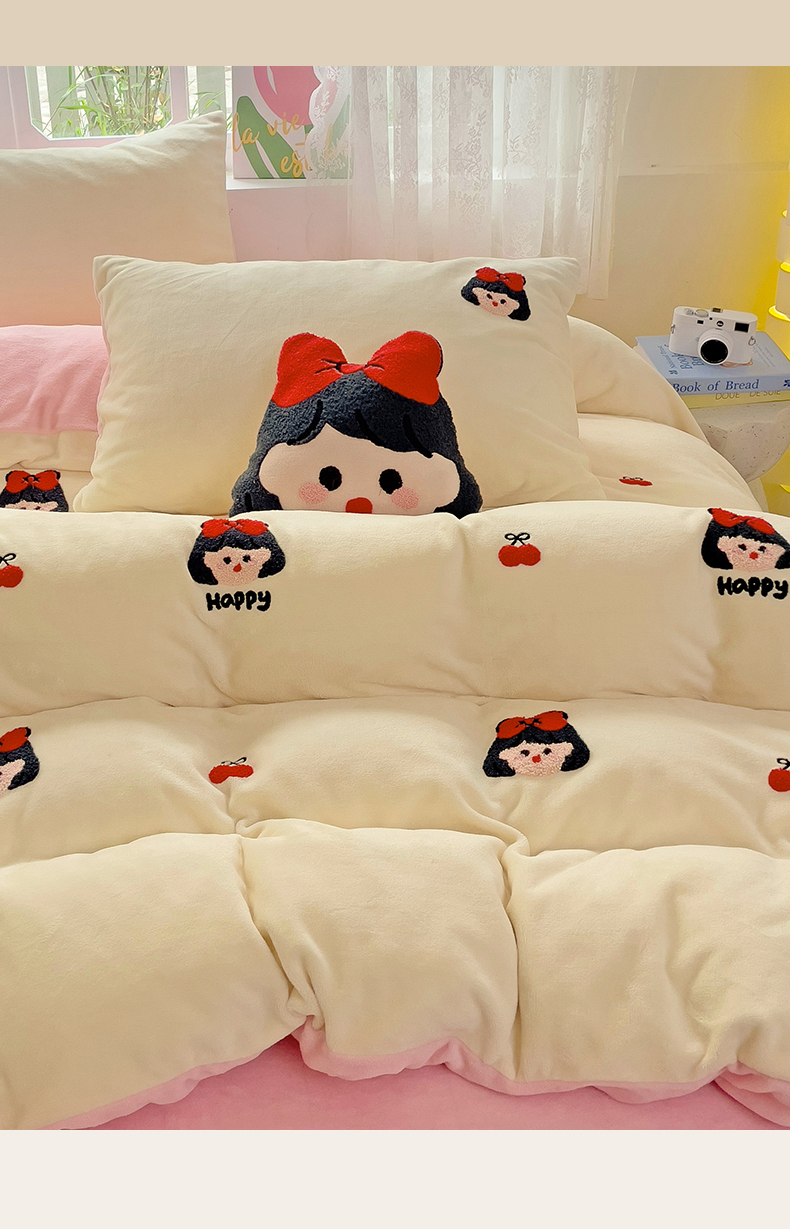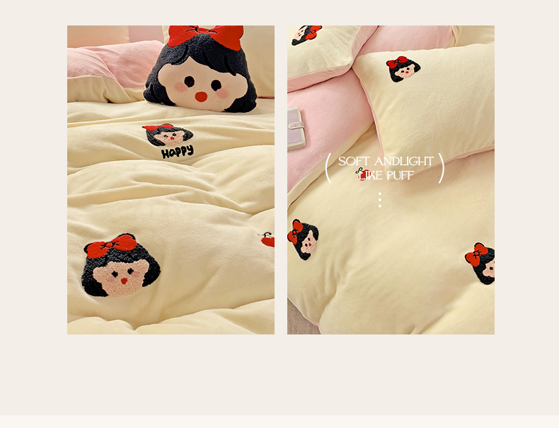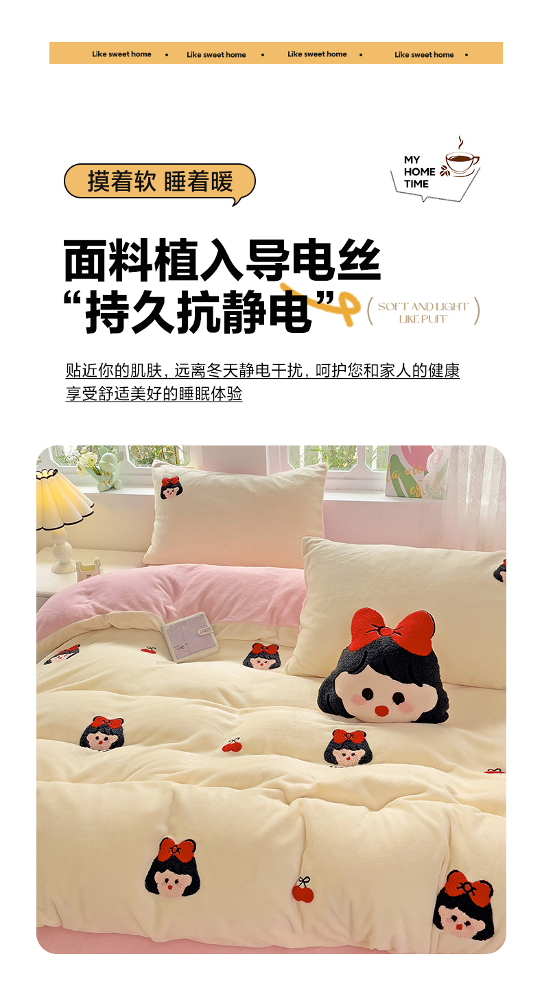 当前位置: 91家纺网 > 商品网购 > 床品套件 > 四件套 > 牛奶绒四件套 > 寐居家纺 2024新款纯色牛奶绒毛巾绣四件套 樱桃女孩-粉白