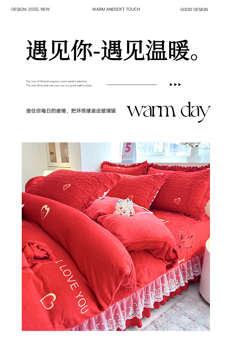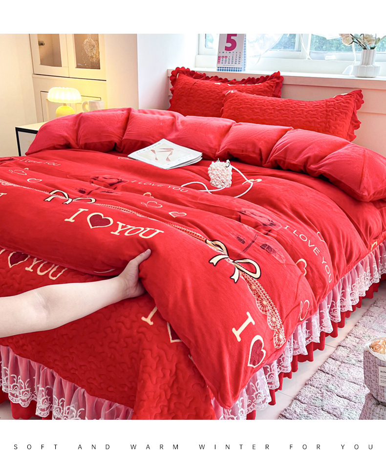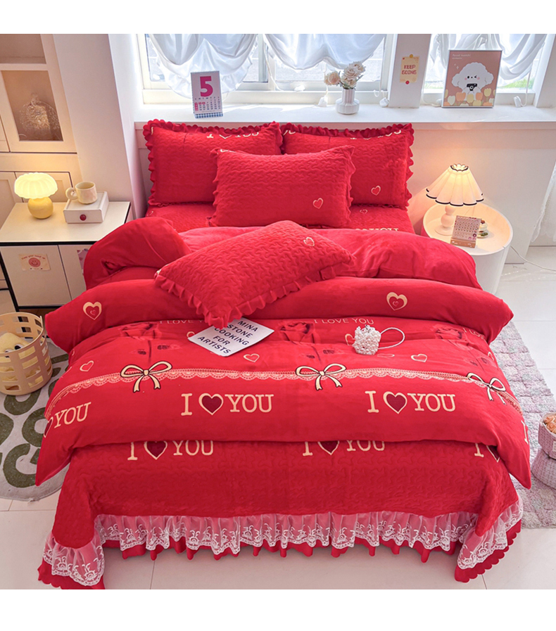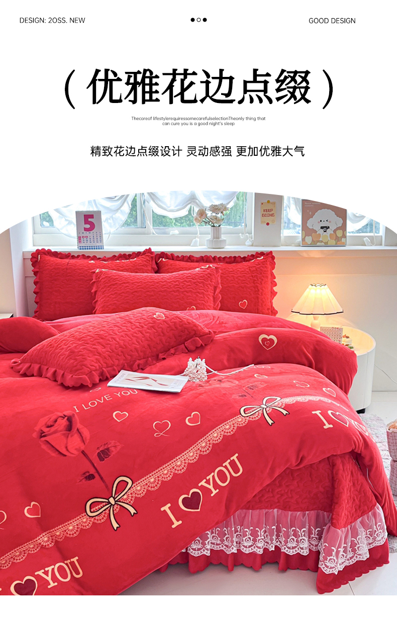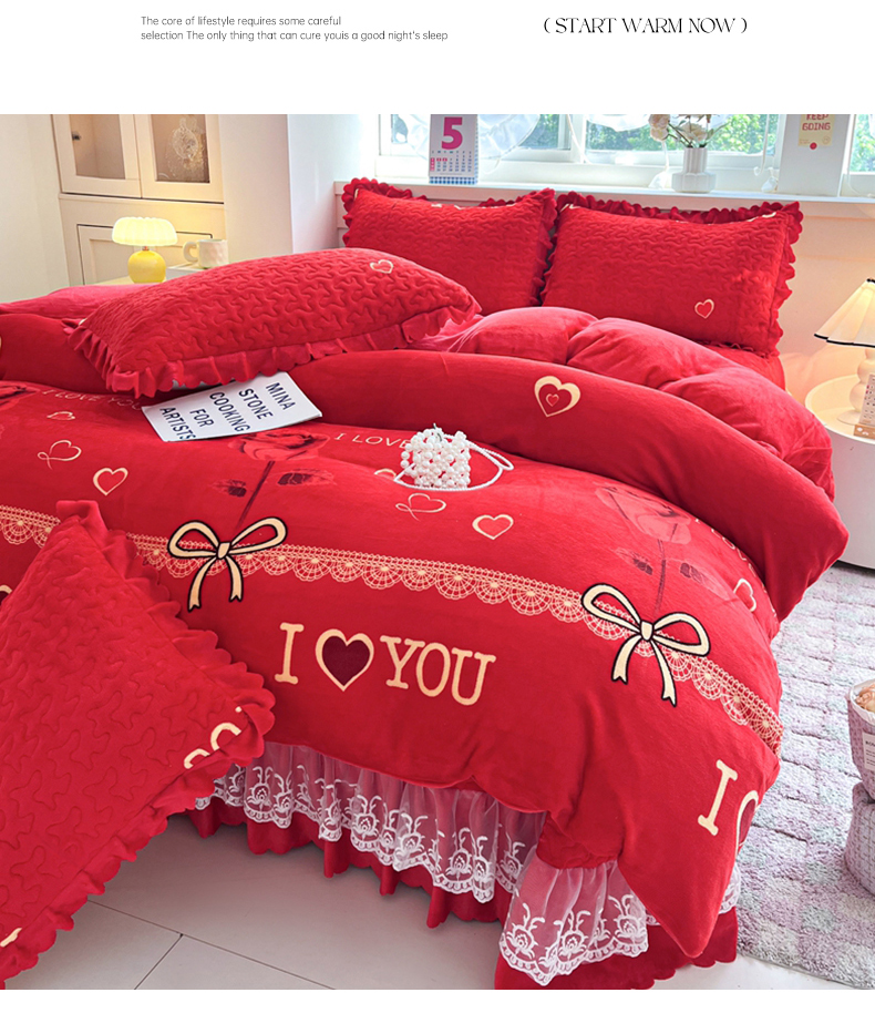 当前位置: 91家纺网 > 商品网购 > 床品套件 > 四件套 > 牛奶绒四件套 > 铠畅 2025新款加厚牛奶绒床盖四件套 心心相恋