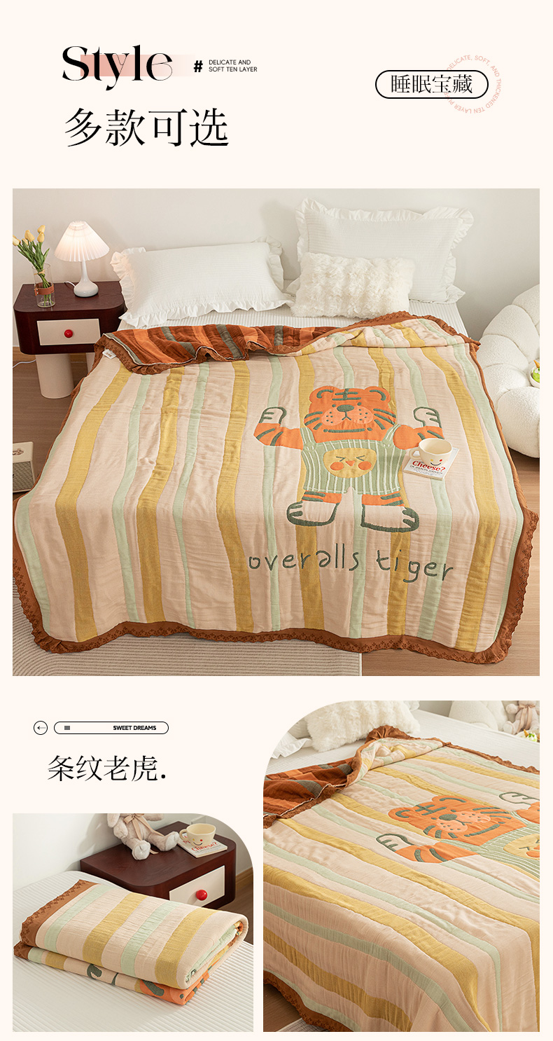 商品名称:乐家毛巾被 2024新款十层纱布泡芙被 条纹老虎