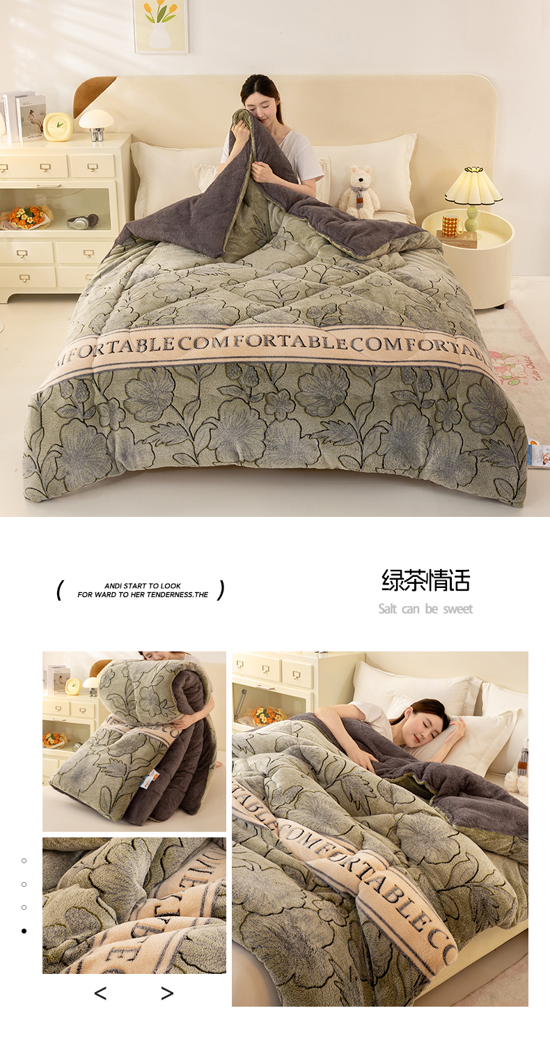 • 91家纺网 家纺一手货源 找家纺 好梦来家纺(原锦茂家纺) 2025新款印花款A类雪花绒冬被羊羔绒冬被被芯冬季牛奶绒冬被 绿茶情话