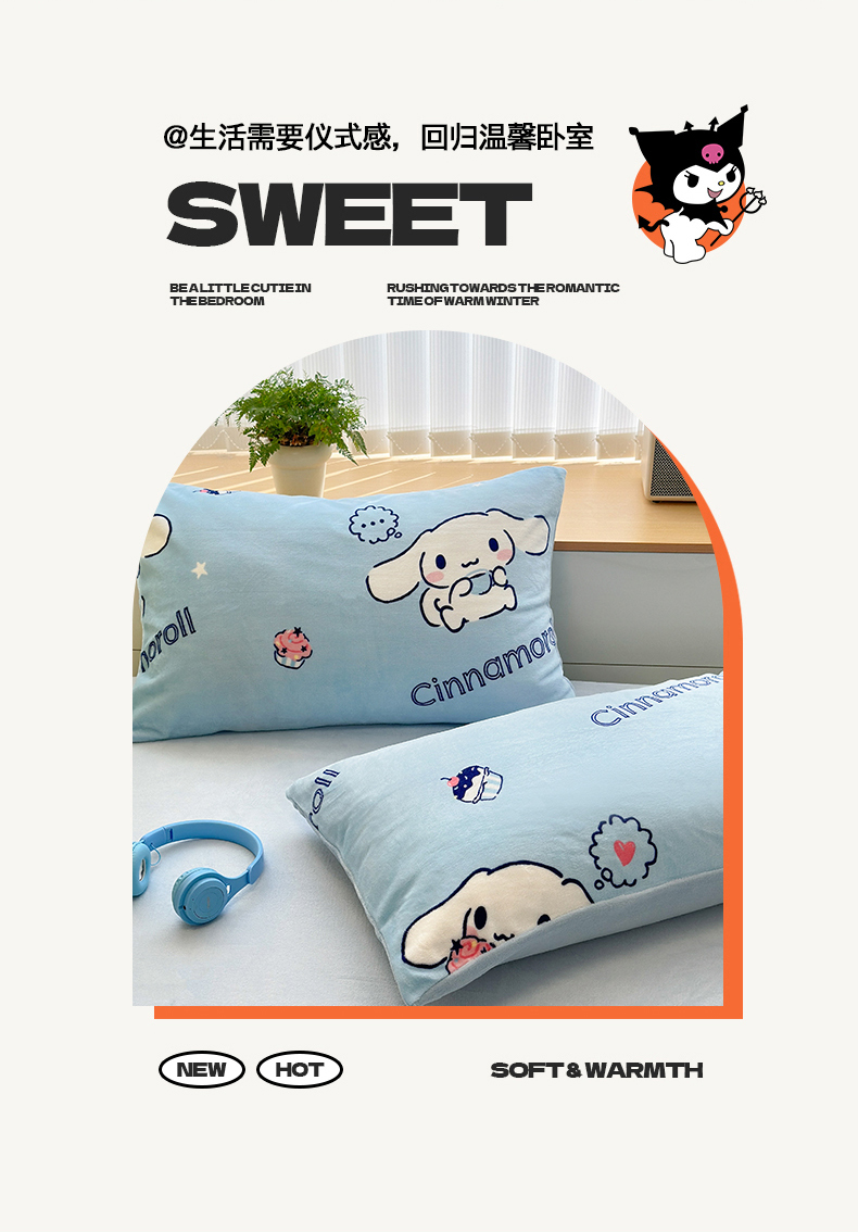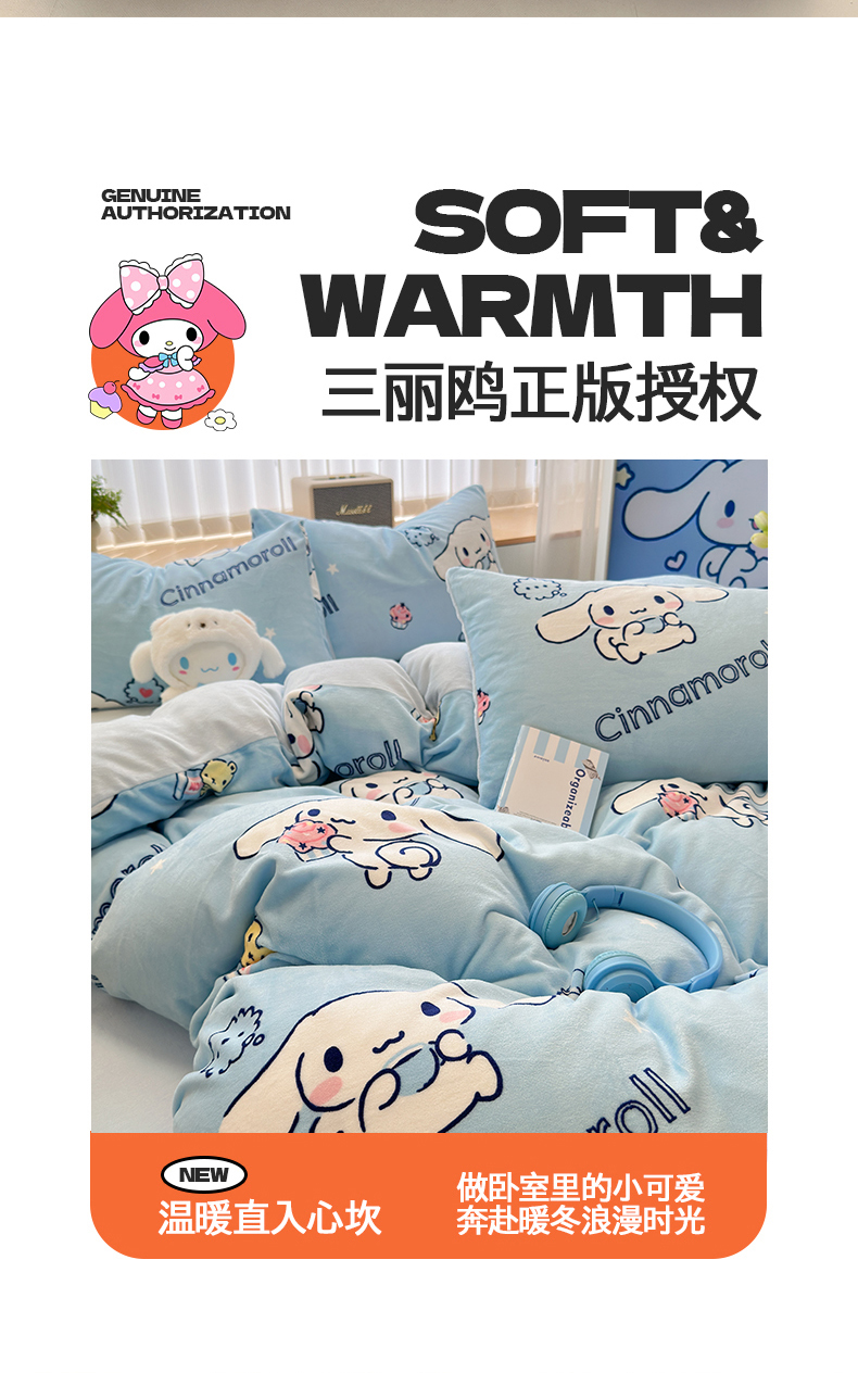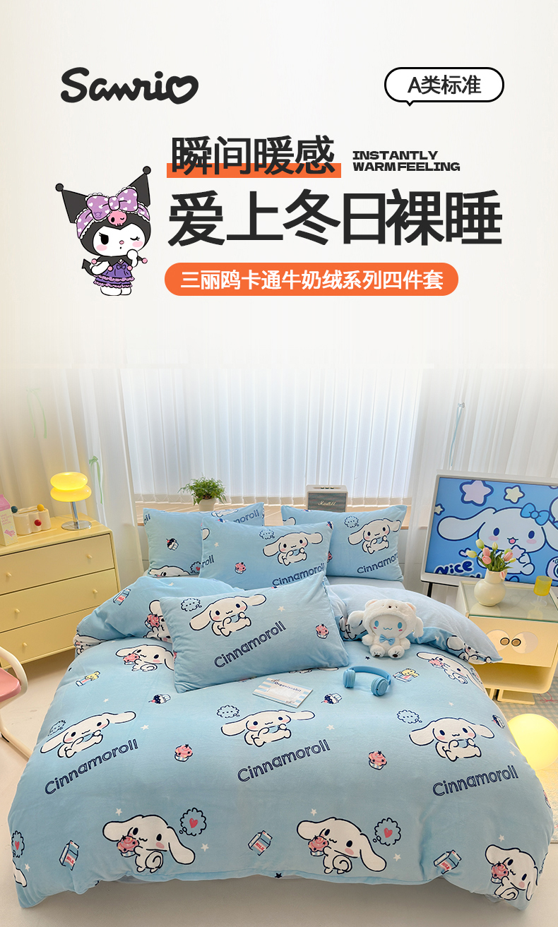 曼之夏 2024新款A类三丽鸥卡通牛奶绒系列四件套 牛奶玉桂狗