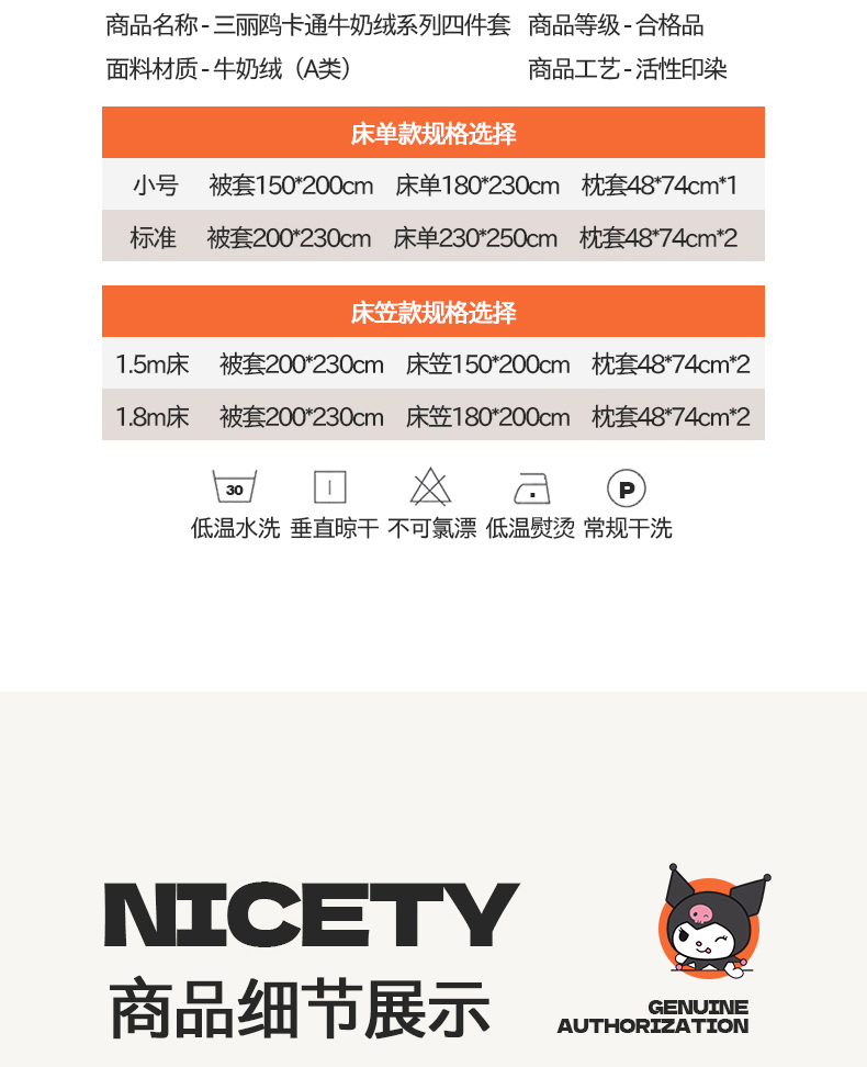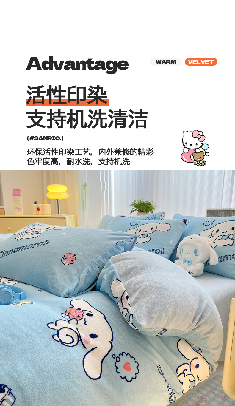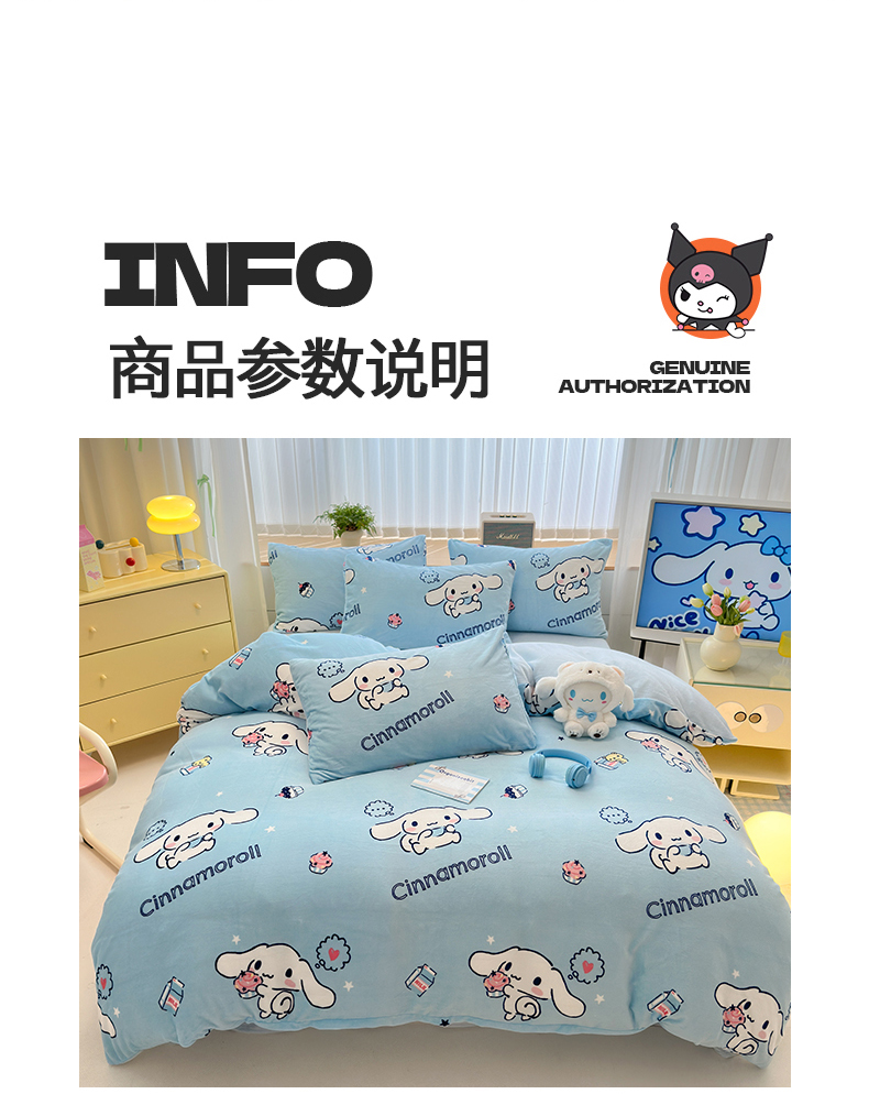 商品名称:曼之夏 2024新款A类三丽鸥卡通牛奶绒系列四件套 牛奶玉桂狗