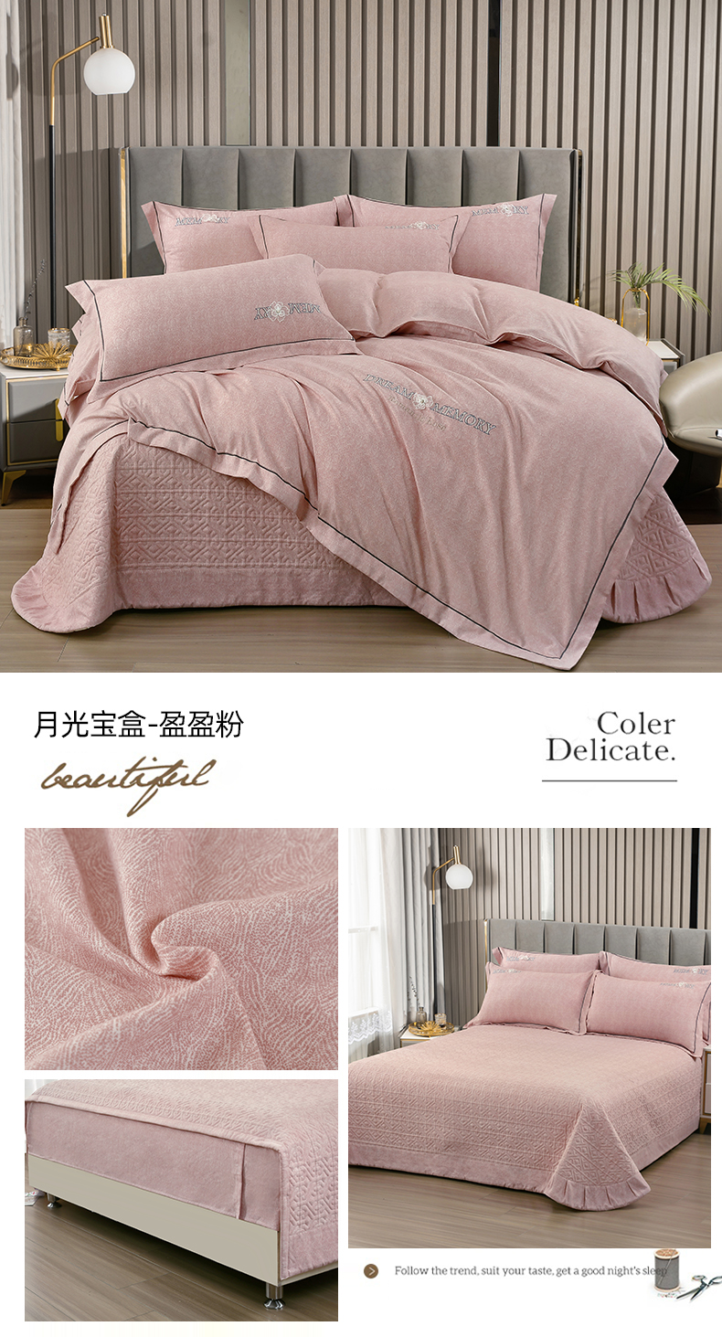 (总)2024新款磨毛肌理纹刺绣轻奢风床盖夹棉四件套-月光宝盒系列