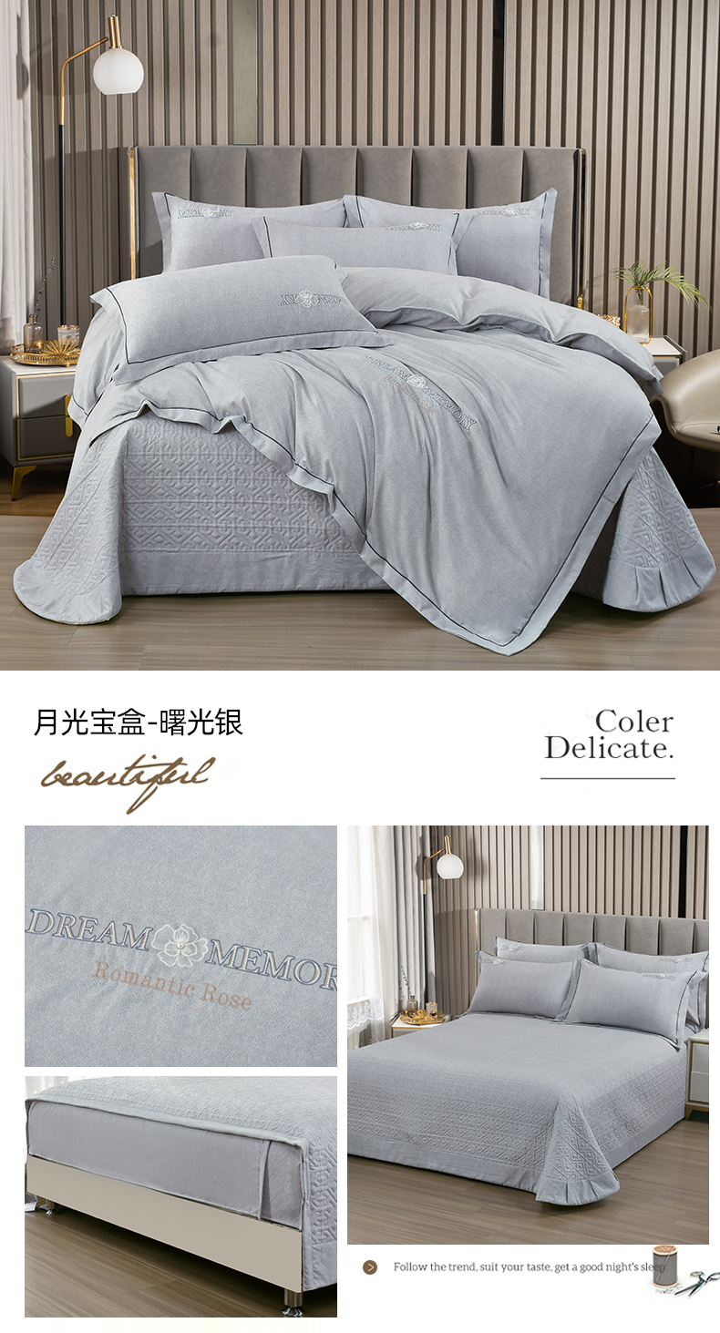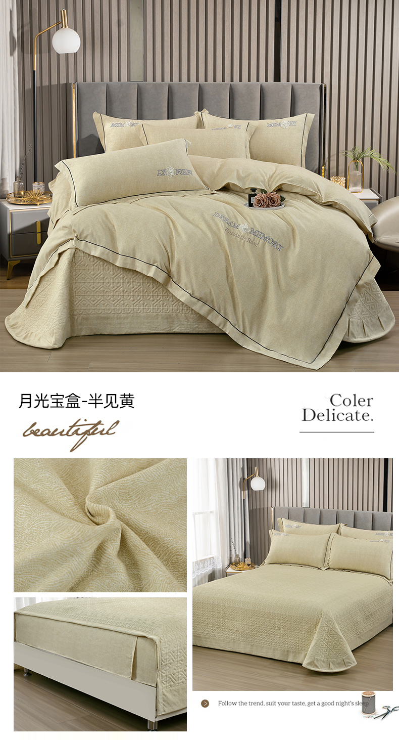 商品名称:(总)2024新款磨毛肌理纹刺绣轻奢风床盖夹棉四件套-月光宝盒系列