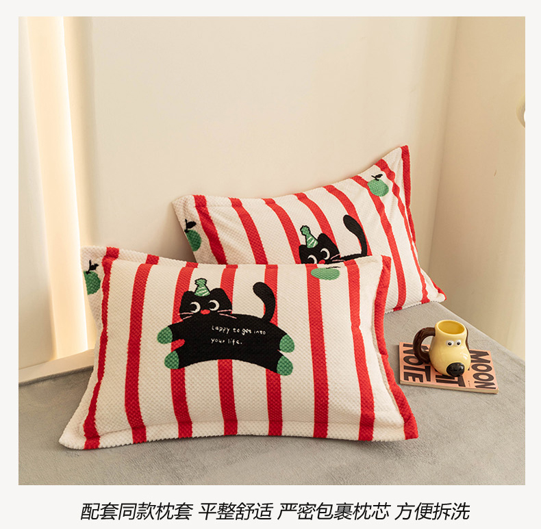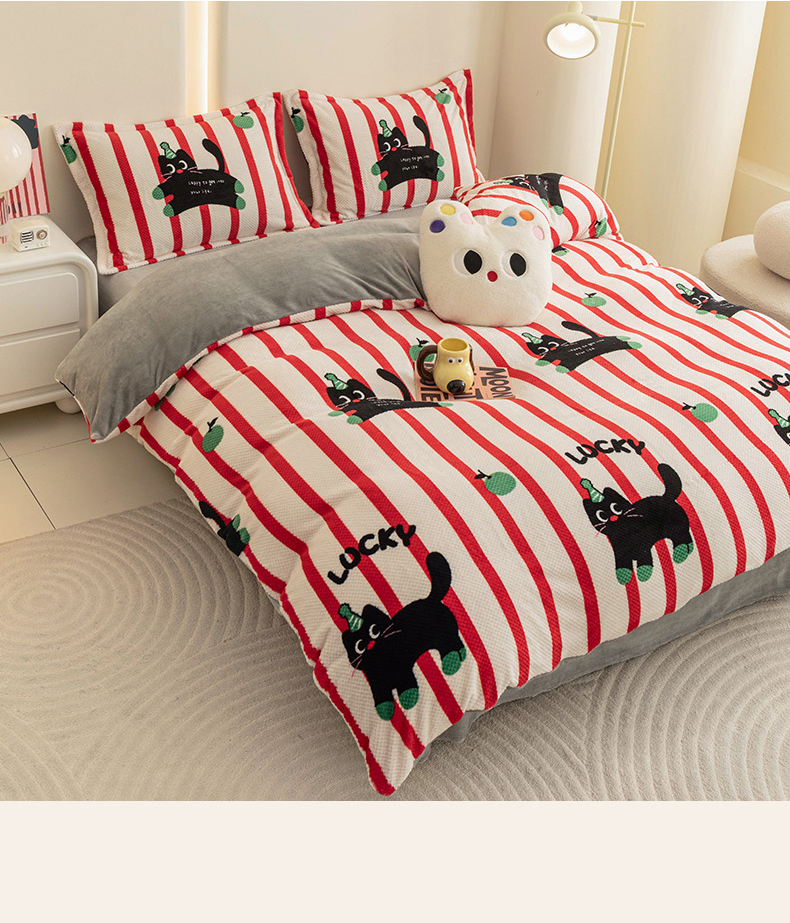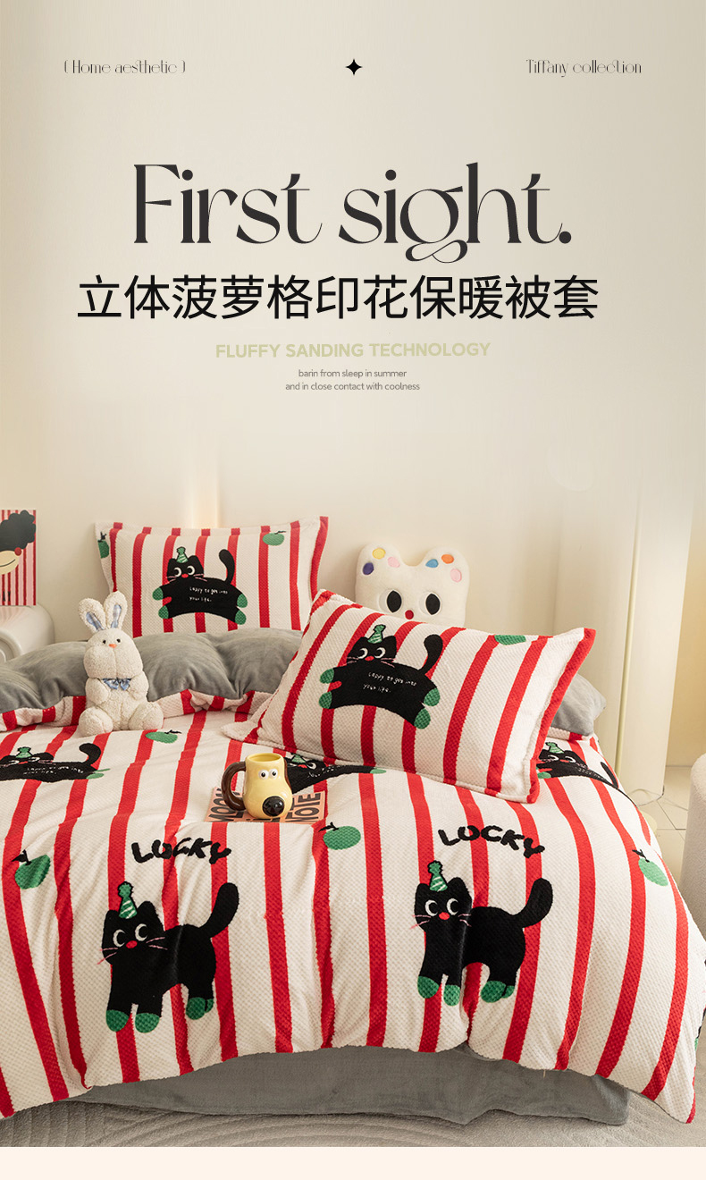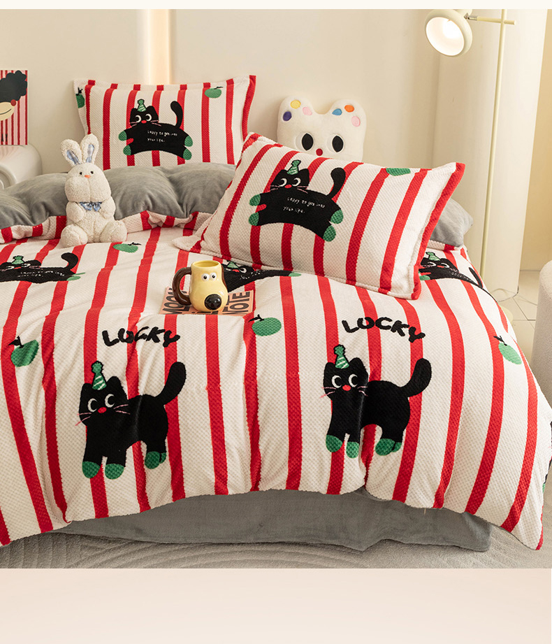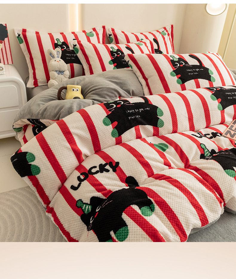 2024新款立体菠萝格印花保暖牛奶绒系列单被套 红黑猫