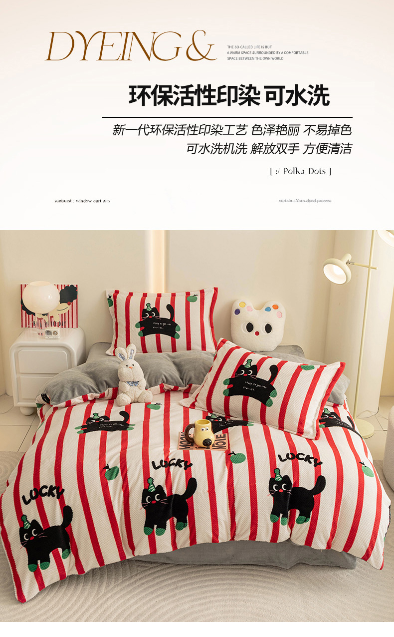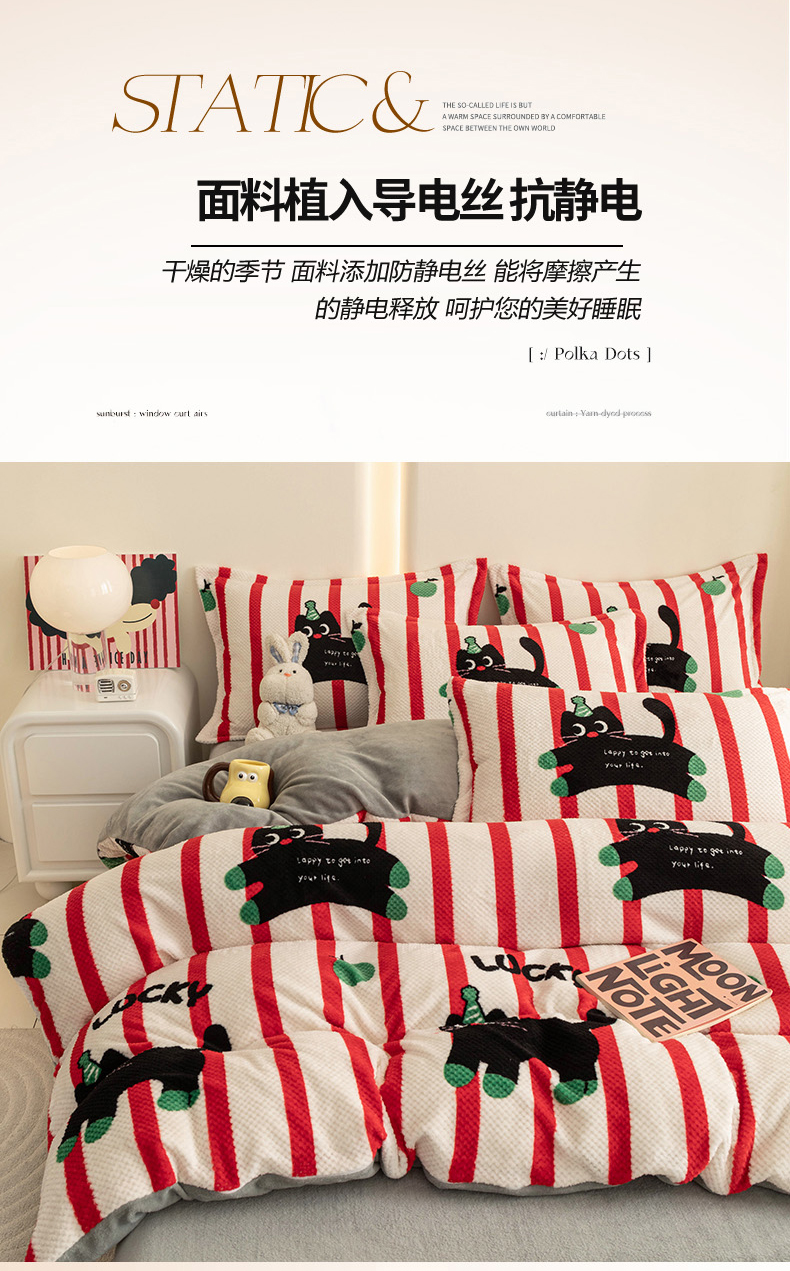 商品名称:2024新款立体菠萝格印花保暖牛奶绒系列单被套 红黑猫