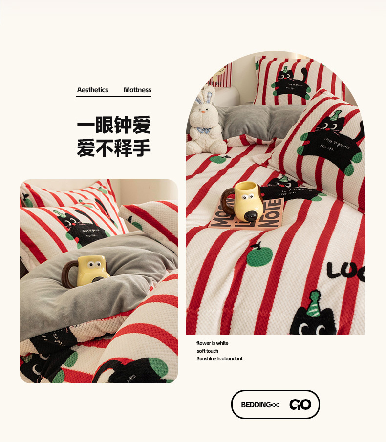 (总)倾慕家纺 2025新款卡通毛巾绣加厚保暖牛奶绒四件套,爱心女孩,咖啡小狗,猫咪熊兔,迷你小车,圣诞树熊,音乐企鹅