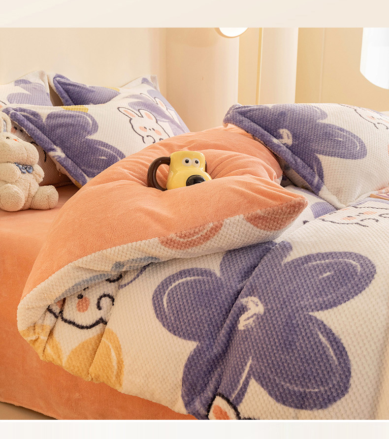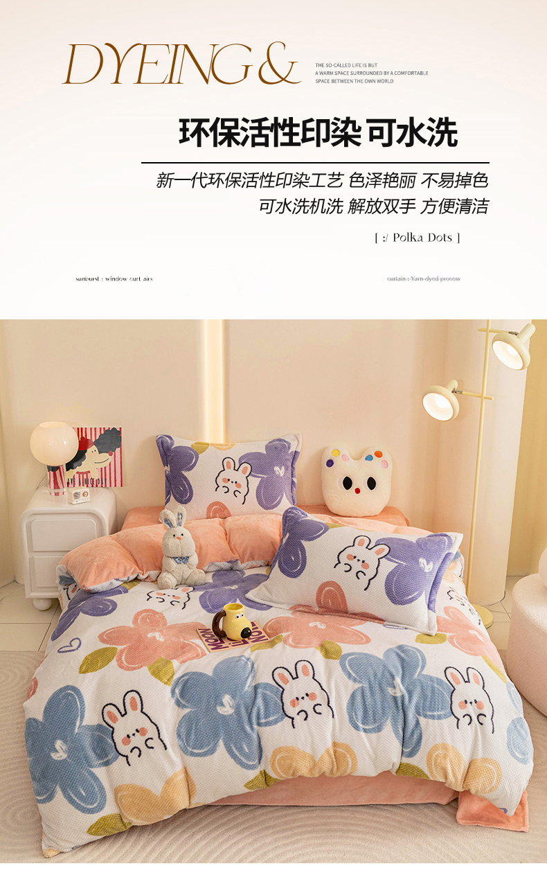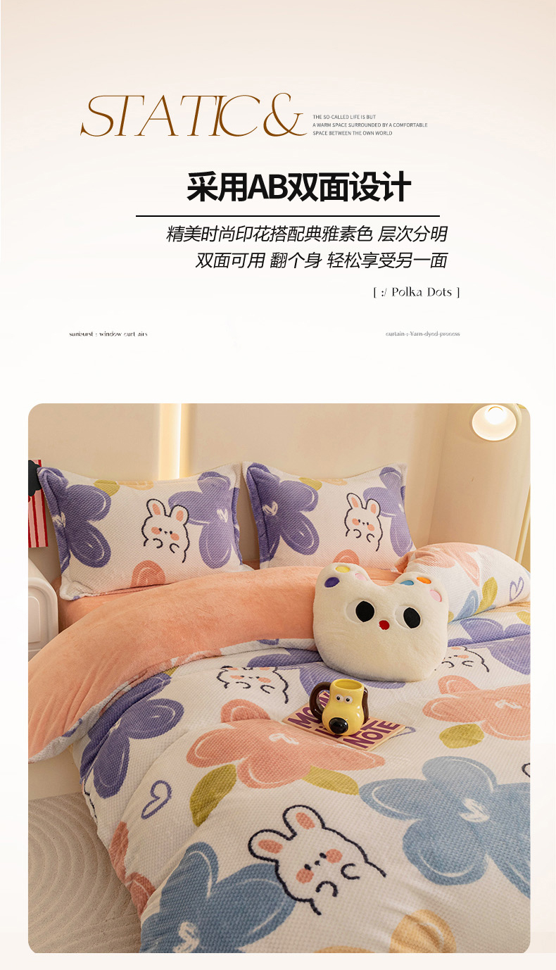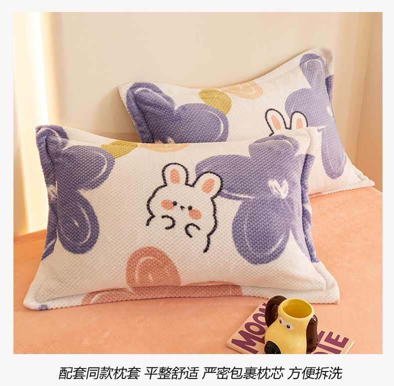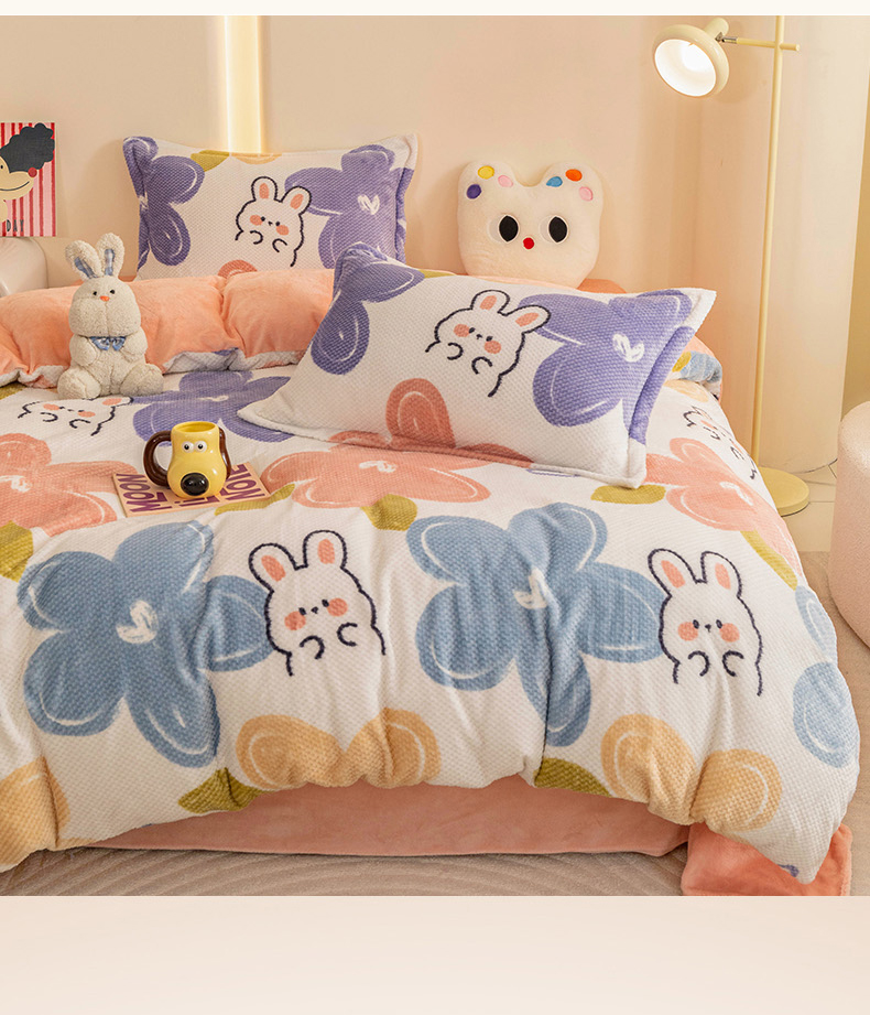 商品名称:2024新款立体菠萝格印花保暖牛奶绒系列单被套 七彩小兔