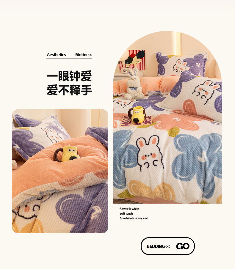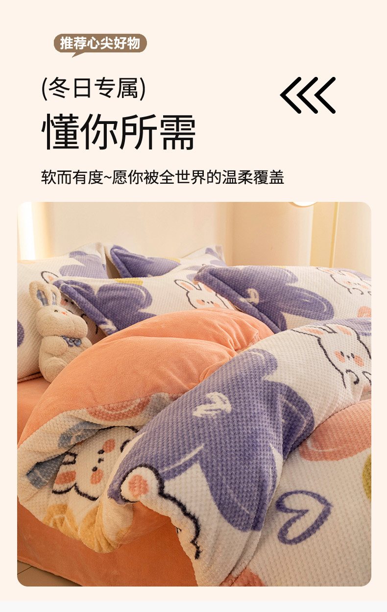(总)倾慕家纺 2025新款卡通毛巾绣加厚保暖牛奶绒四件套,爱心女孩,咖啡小狗,猫咪熊兔,迷你小车,圣诞树熊,音乐企鹅