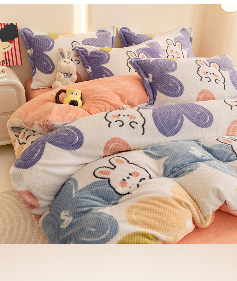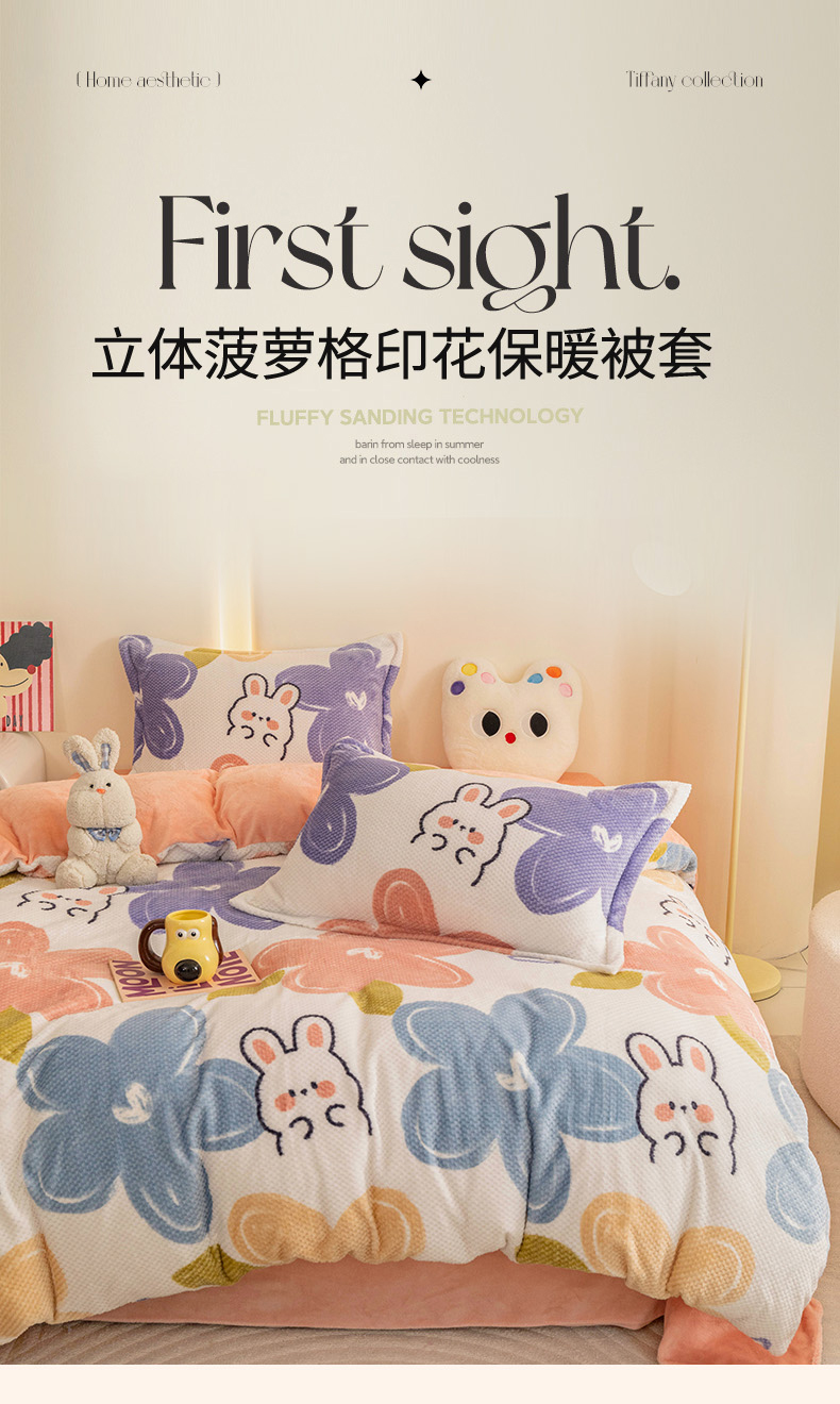 2024新款立体菠萝格印花保暖牛奶绒系列单被套 七彩小兔