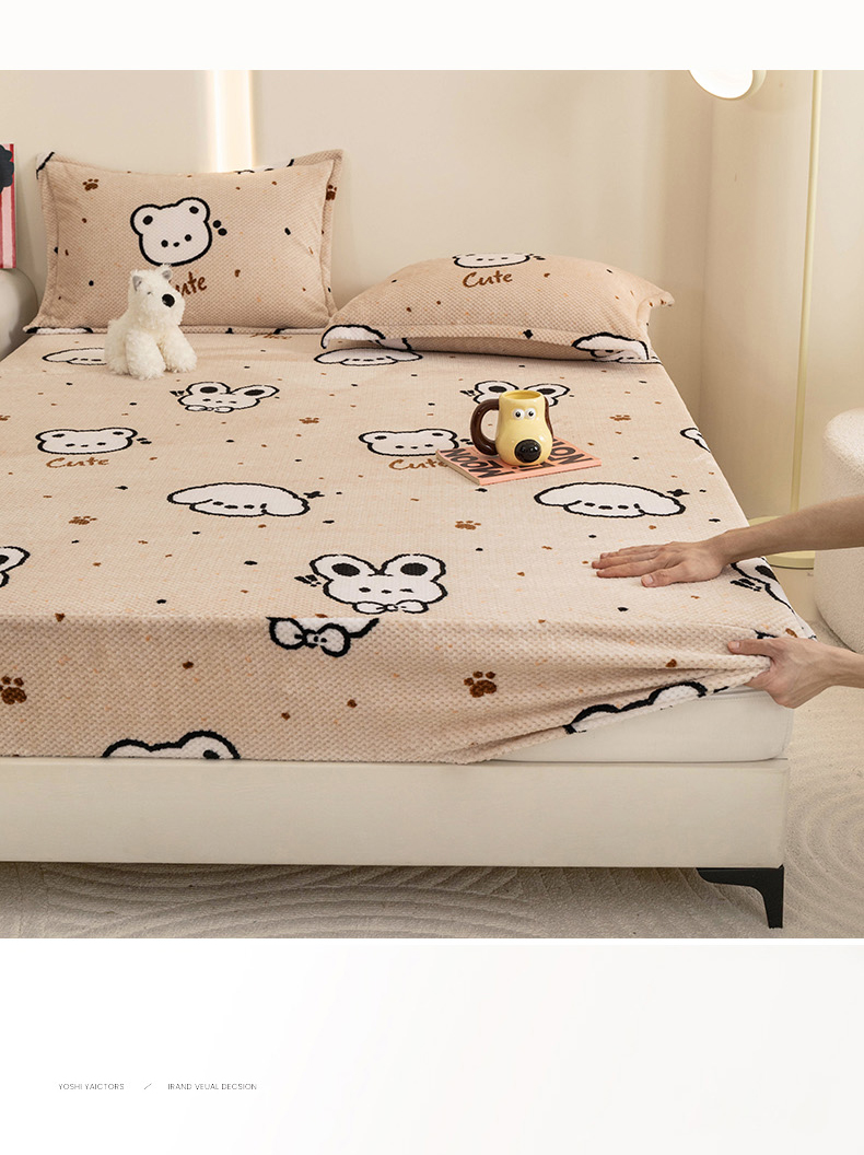 2024新款立体菠萝格印花保暖牛奶绒系列单床笠 米粒乐园